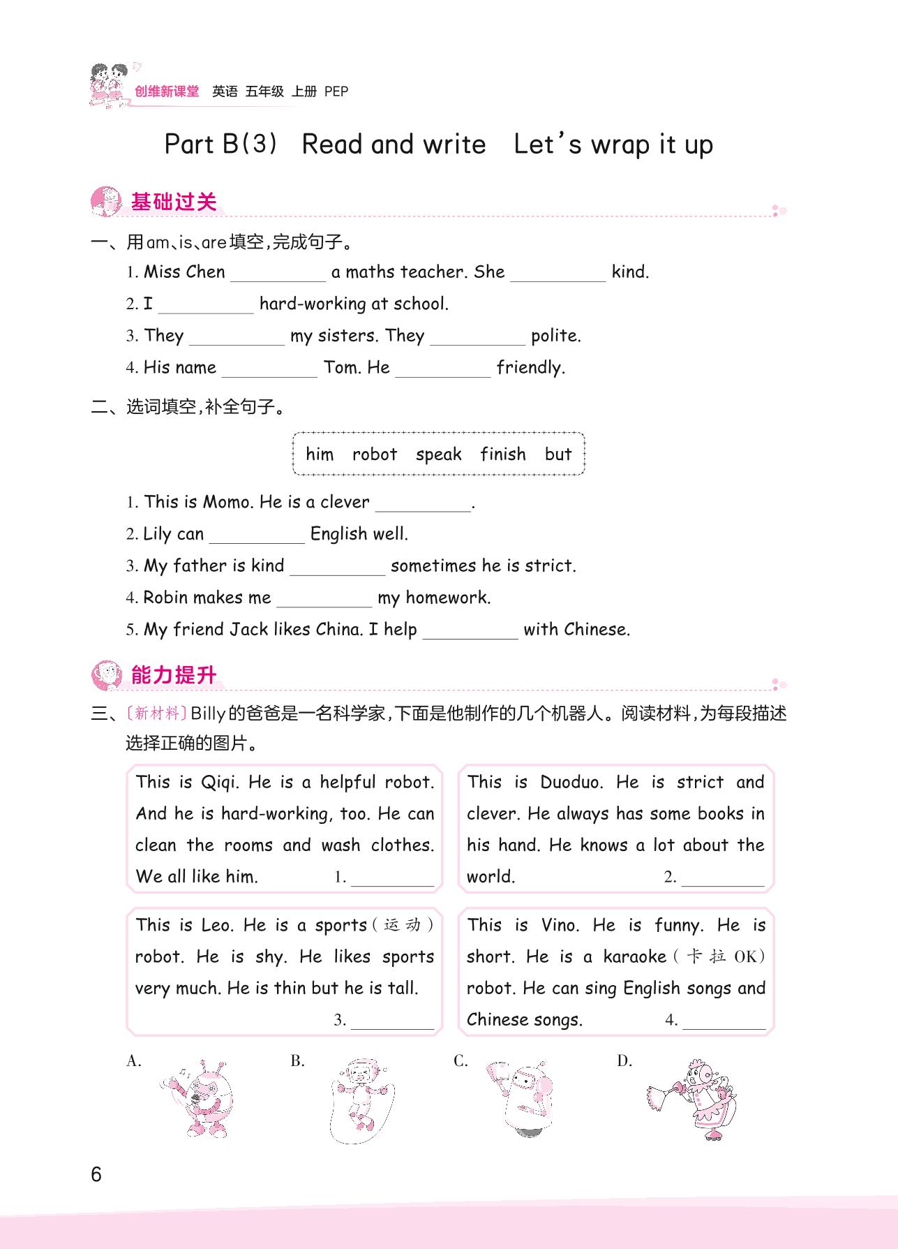 2023上册五年级英语人教PEP版 Unit 1—Part B(3) Read and write Let’s wrap it up