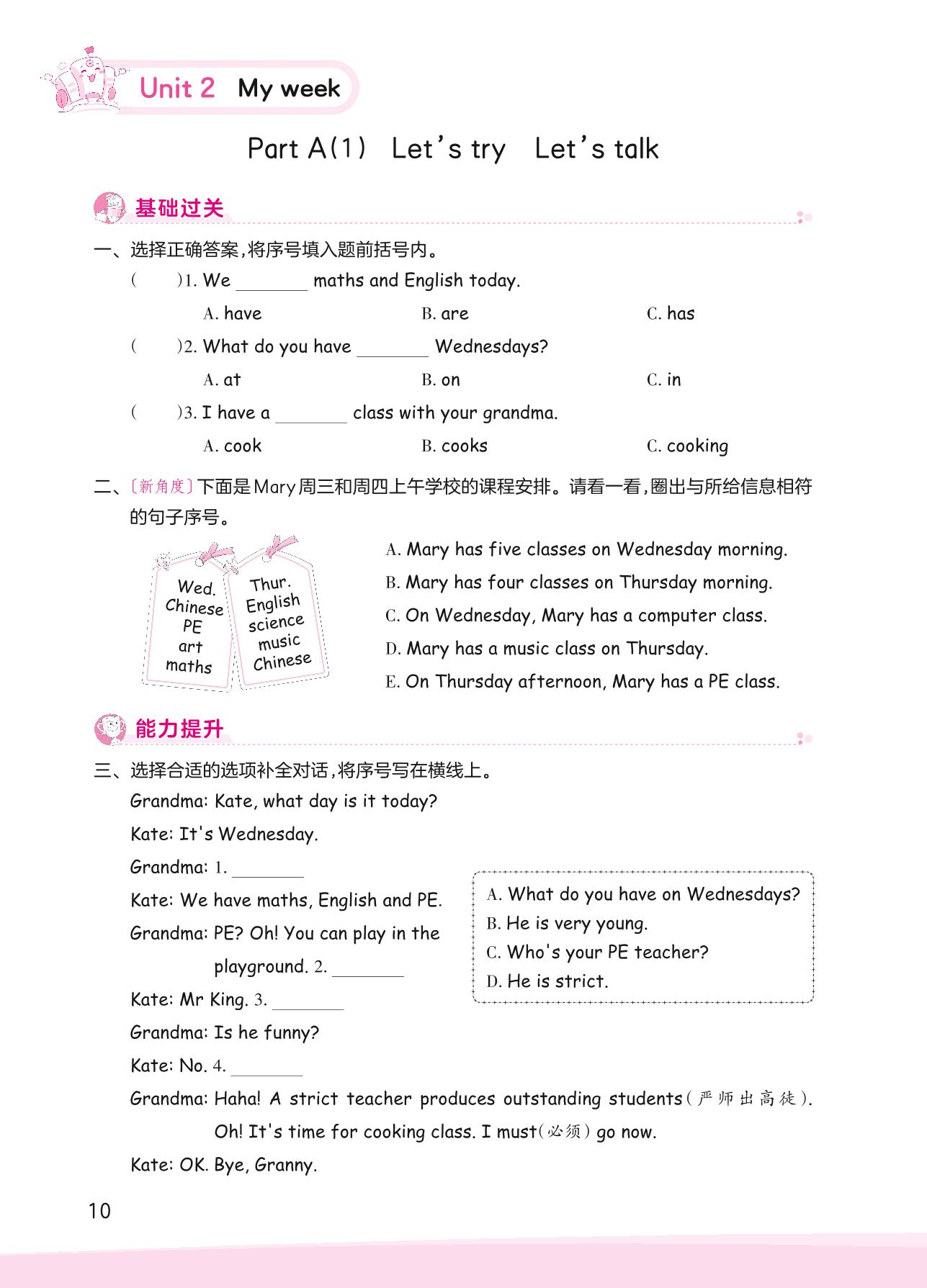 2023上册五年级英语人教PEP版 Unit 2—Part A(1) Let’s try Let’s talk
