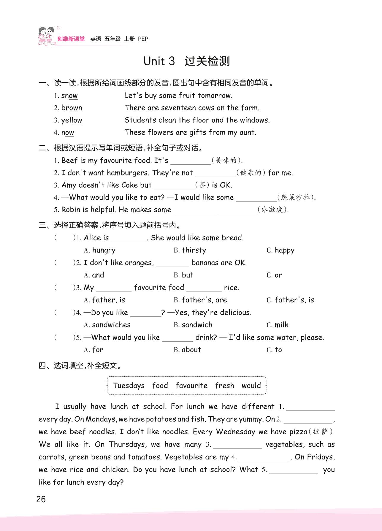 2023上册五年级英语人教PEP版 Unit 3 过关检测