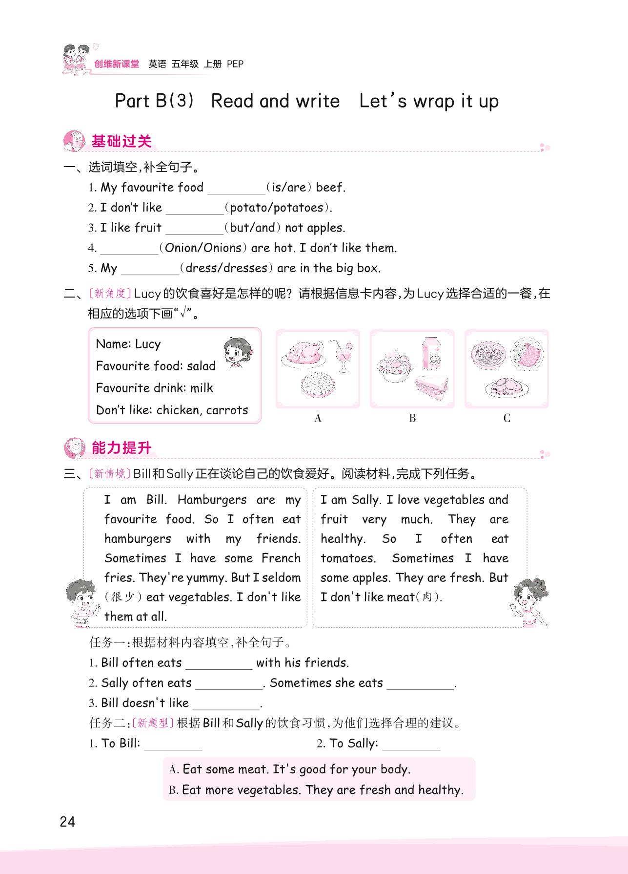 2023上册五年级英语人教PEP版 Unit 3—Part B(3) Read and write Let’s wrap it up