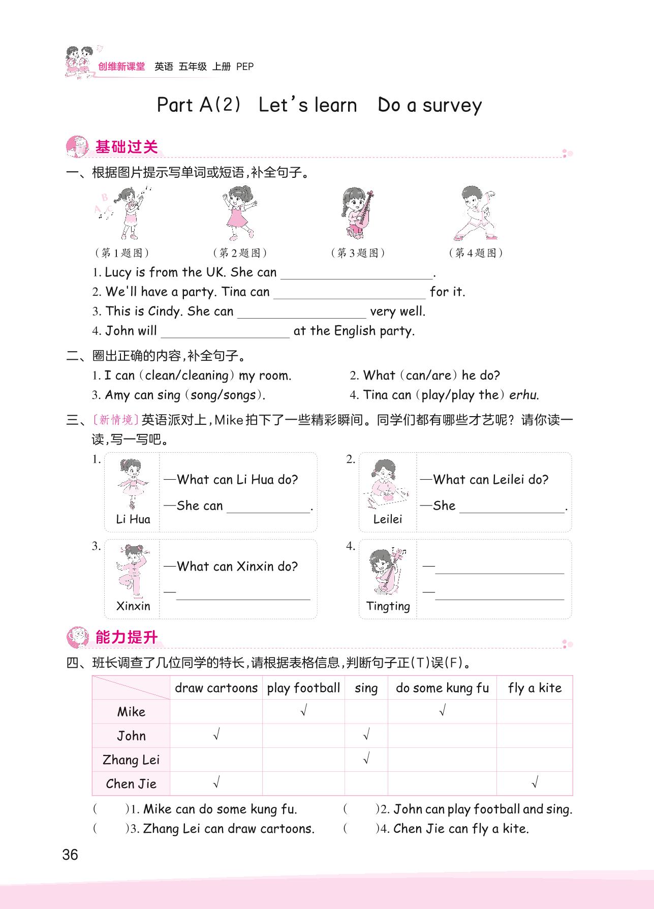 2023上册五年级英语人教PEP版 Unit 4—Part A(2) Let’s learn Do a survey