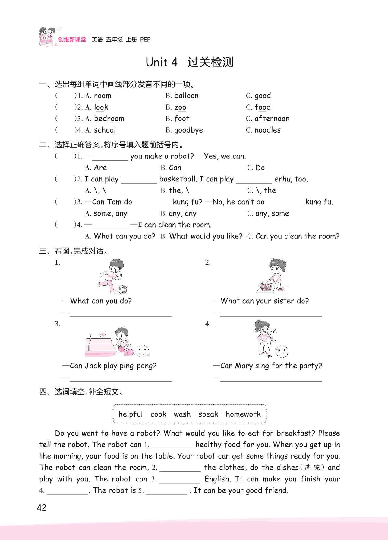 2023上册五年级英语人教PEP版 Unit 4 过关检测