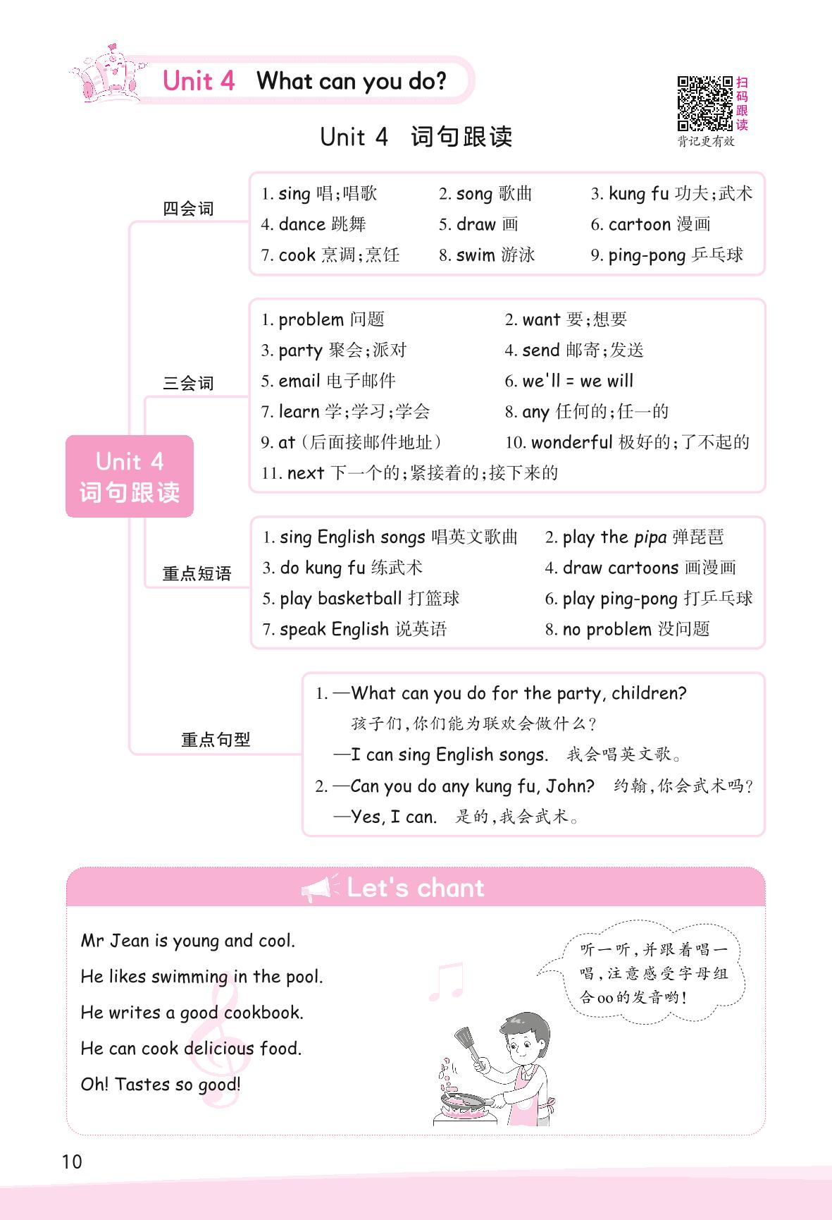 2023上册五年级英语人教PEP版 Unit 4 词句跟读