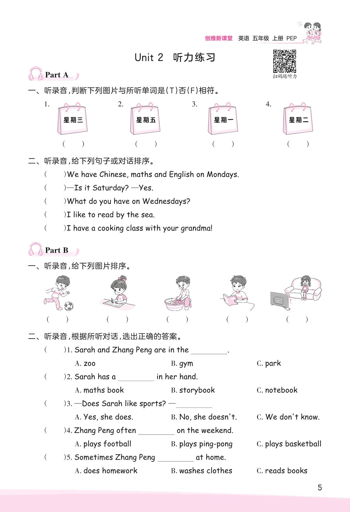 2023上册五年级英语人教PEP版 Unit 2 听力练习
