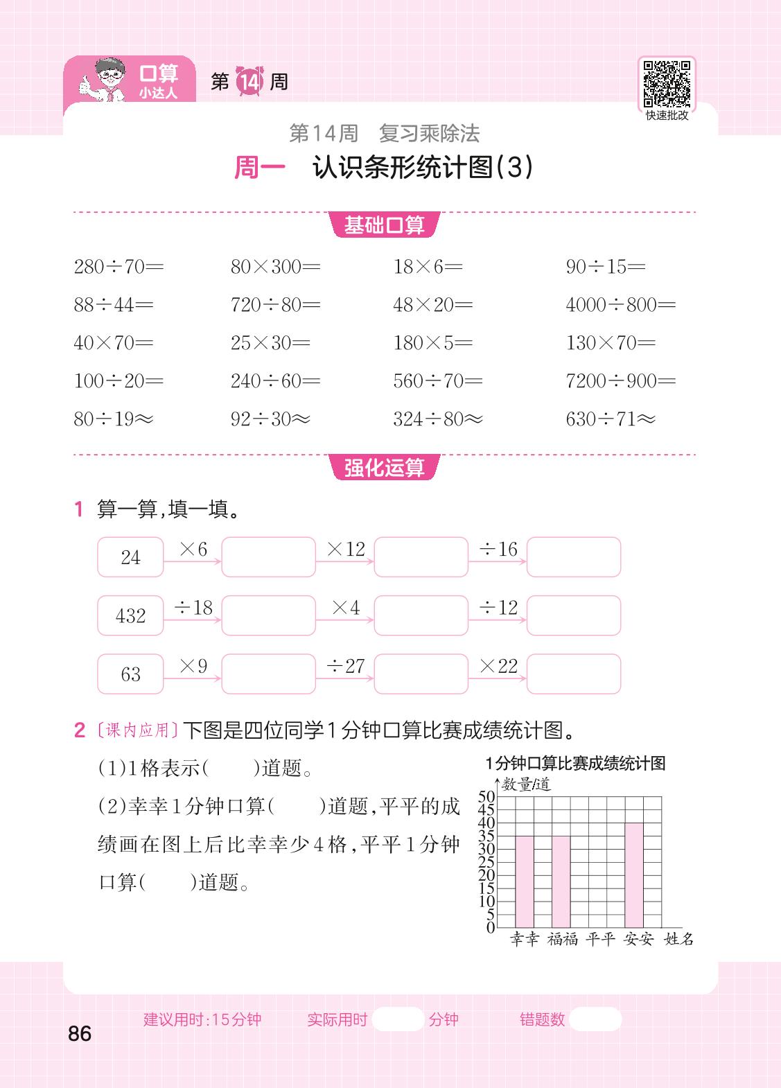 2023上册四年级数学人教版 第14周口算运算