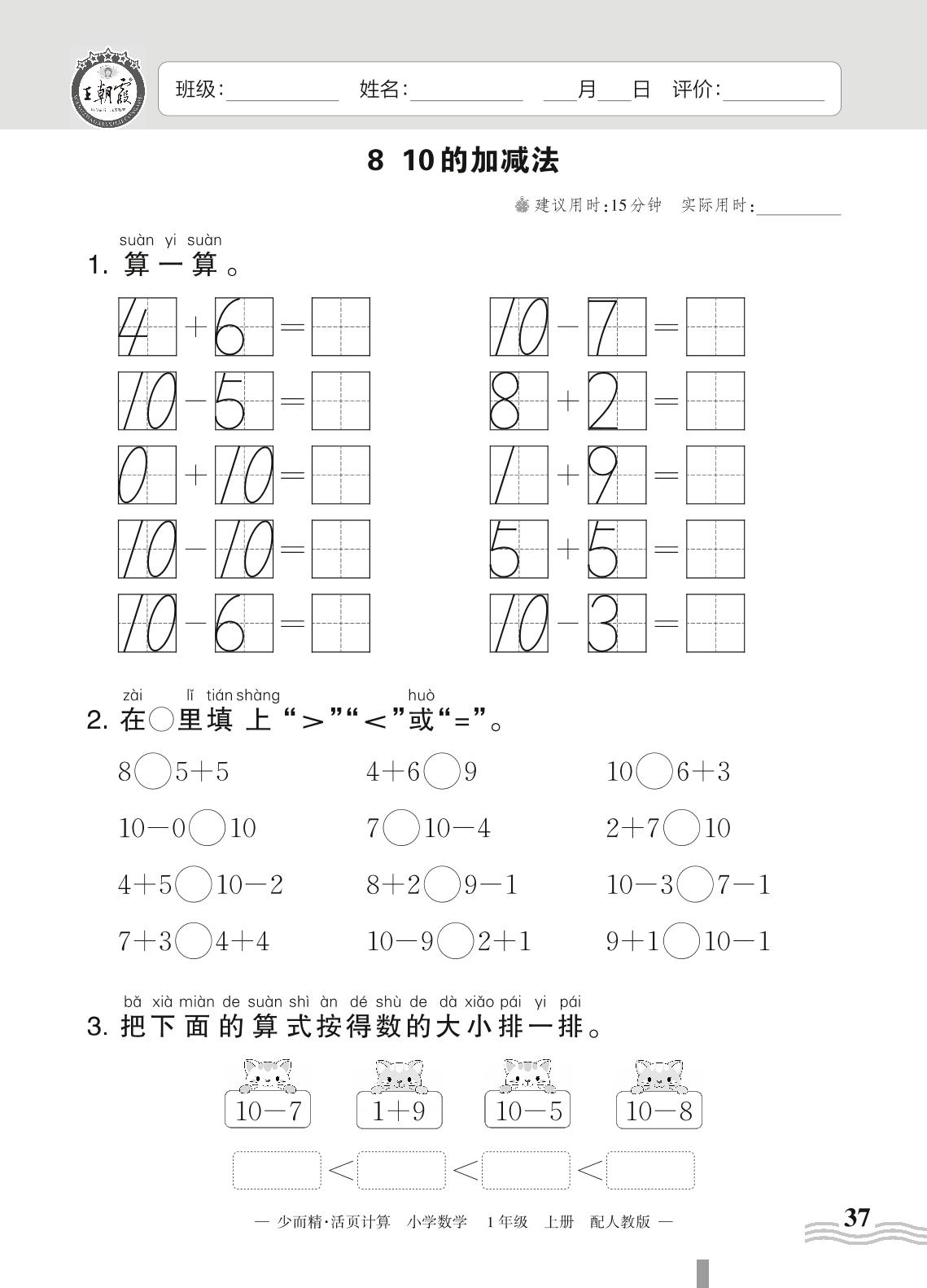 2023上册一年级数学人教版 五 6~10的认识和加减法——8 10的加减法