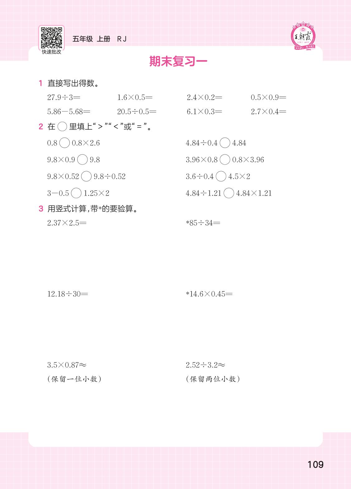 2023上册五年级数学人教版 期末复习一(计算专练)