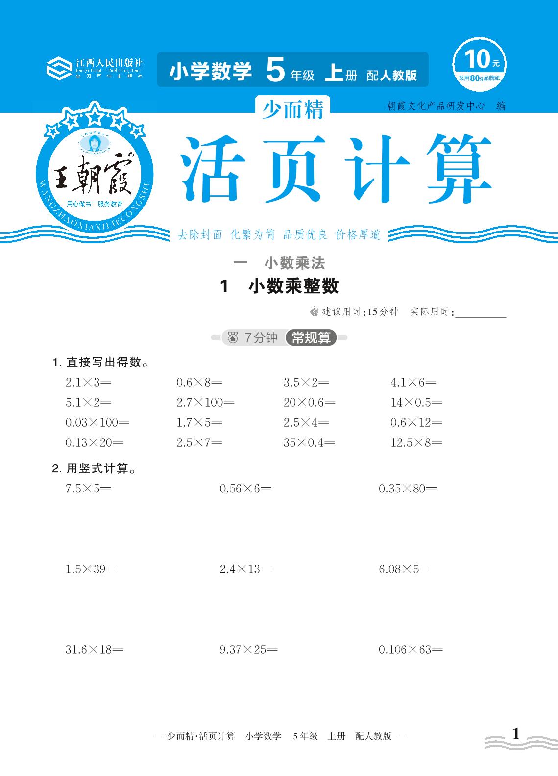 2023上册五年级数学人教版 一 小数乘法——1 小数乘整数