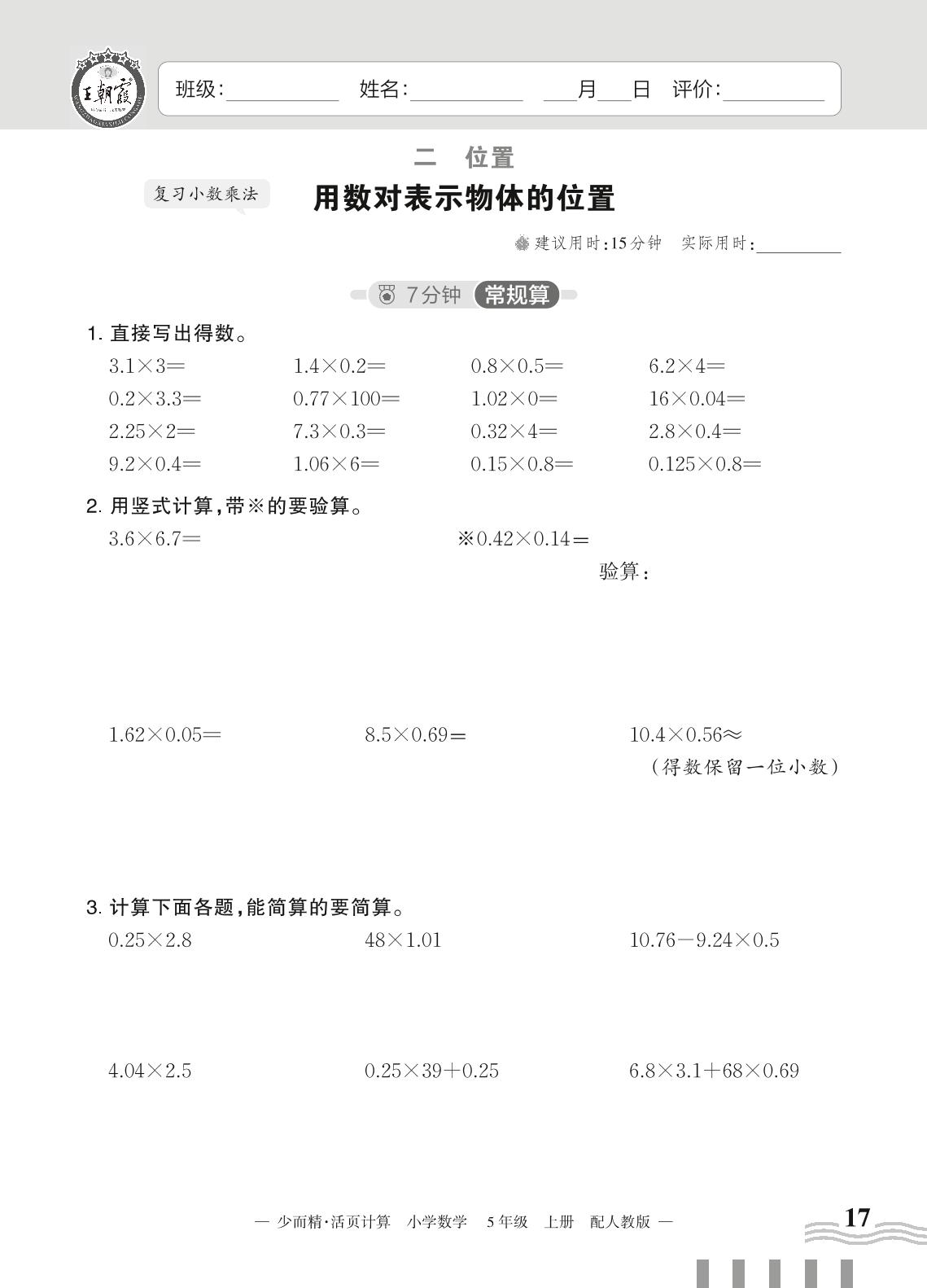 2023上册五年级数学人教版 二 位置——用数对表示物体的位置