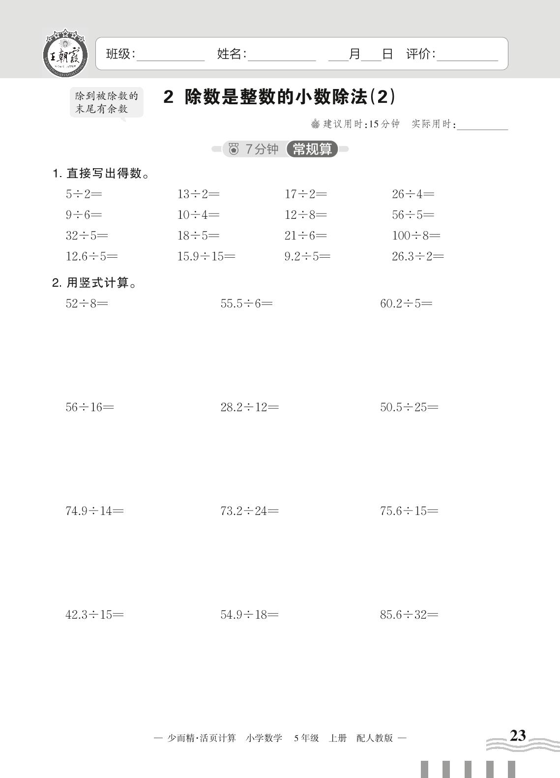 2023上册五年级数学人教版 三 小数除法——2 除数是整数的小数除法(2)