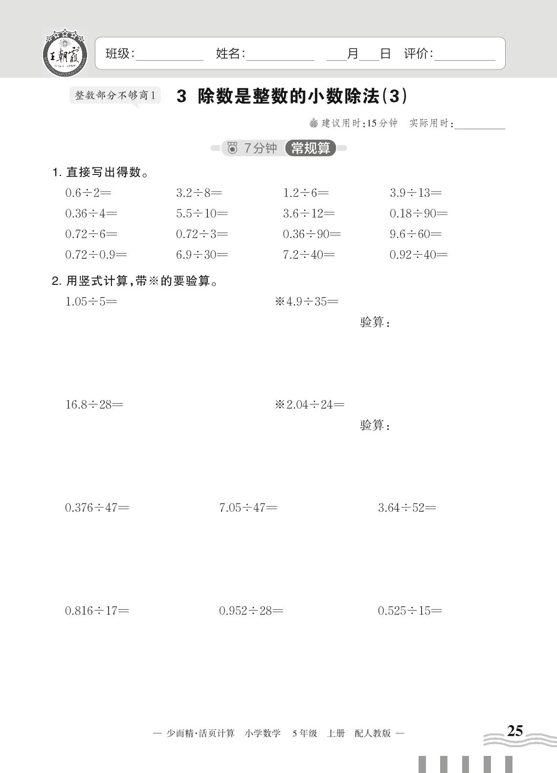 2023上册五年级数学人教版 三 小数除法——3 除数是整数的小数除法(3)