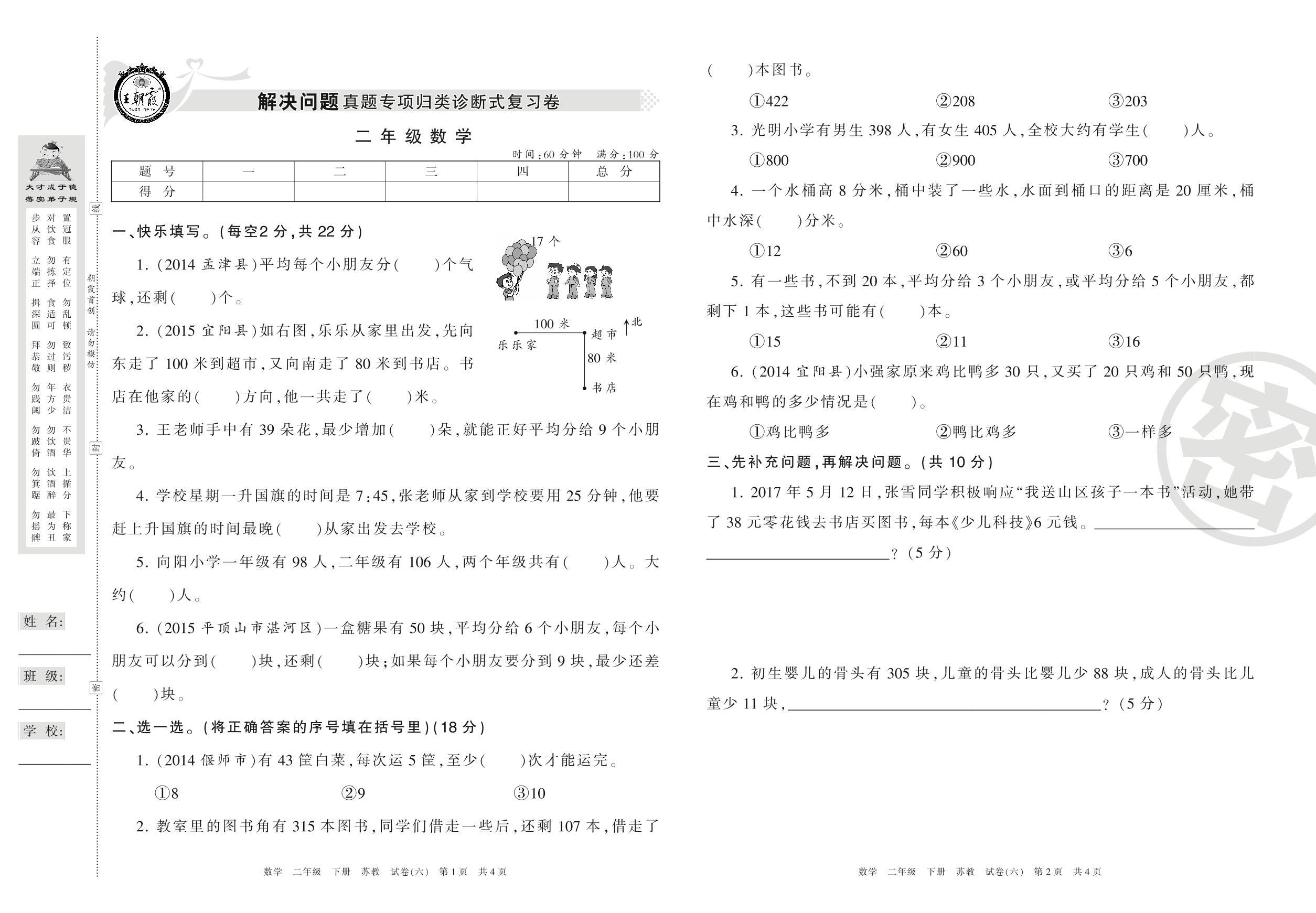 王朝霞期末专项卷二年级下册数学(苏教版)【6】