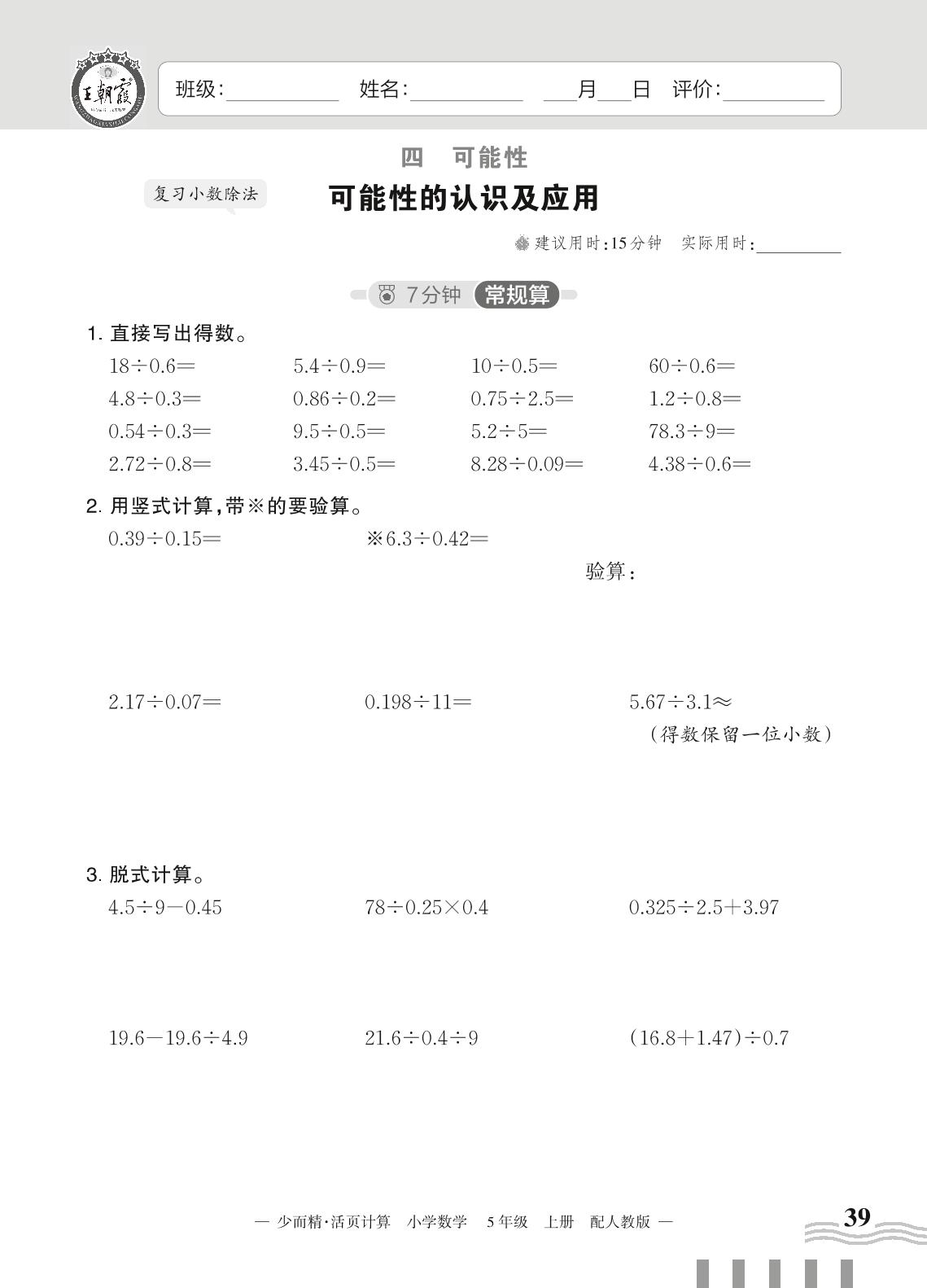 2023上册五年级数学人教版 四 可能性——可能性的认识及应用
