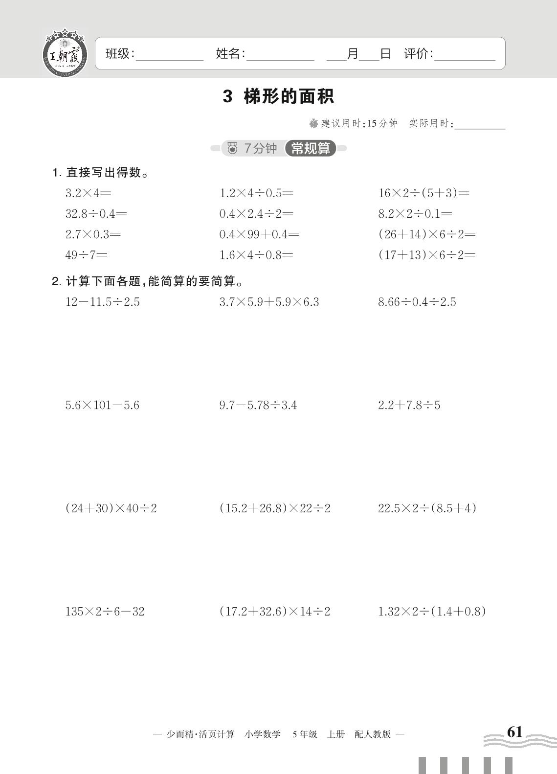2023上册五年级数学人教版 六 多边形的面积——3 梯形的面积