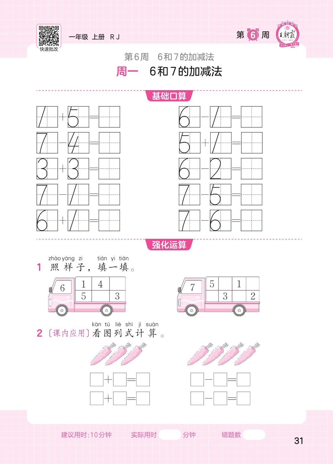 2023上册一年级数学人教版 第6周口算运算