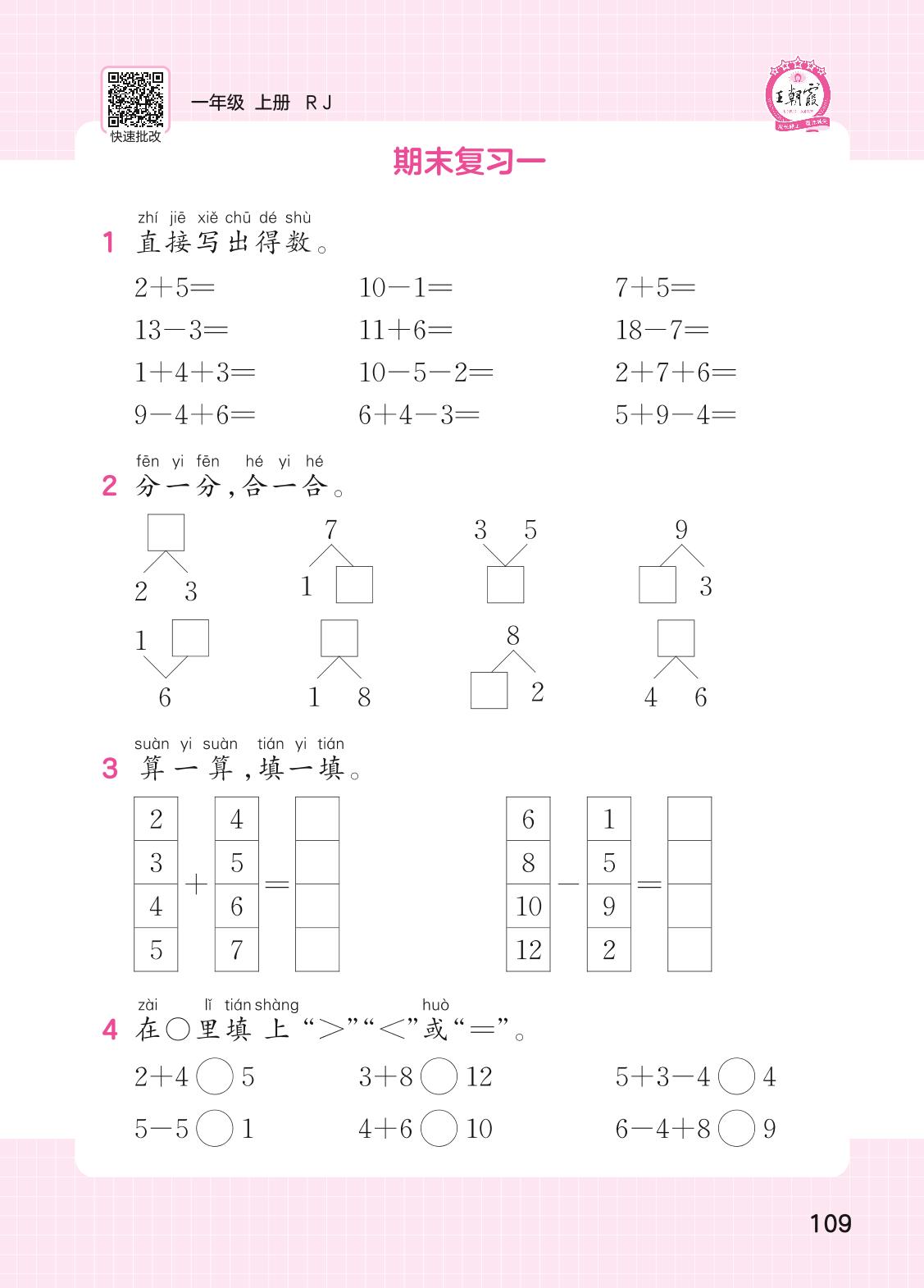 2023上册一年级数学人教版 期末复习一(计算专练)