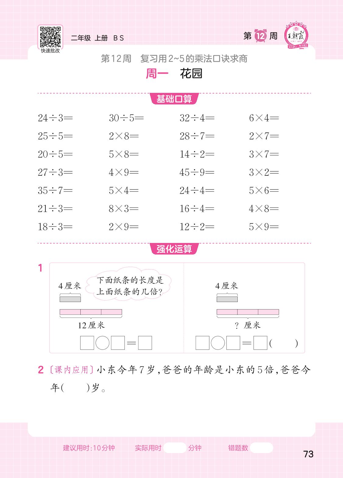 2023上册二年级数学北师版 第12周口算运算