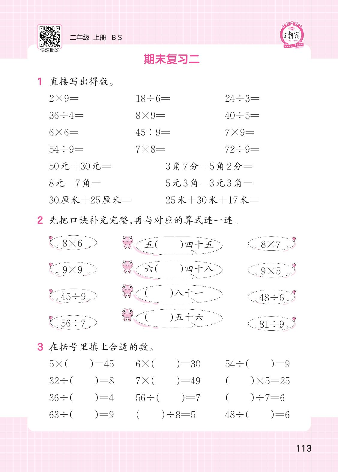 2023上册二年级数学北师版 期末复习二(计算专练)