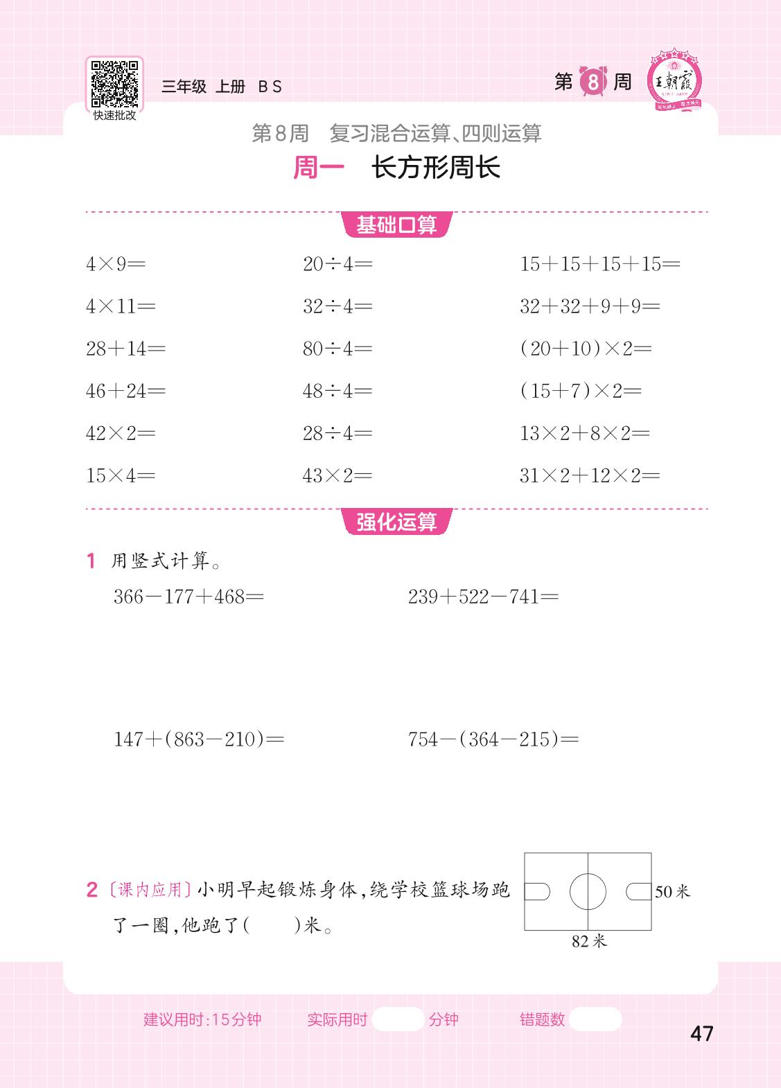 2023上册三年级数学北师版 第8周口算运算