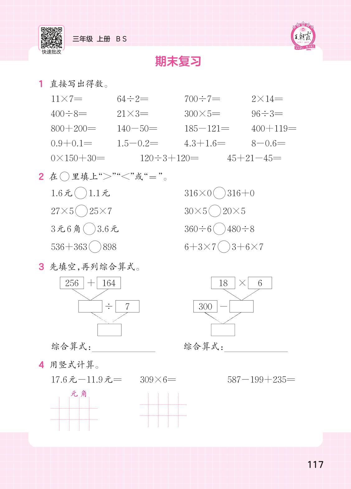 2023上册三年级数学北师版 期末复习(计算专练)