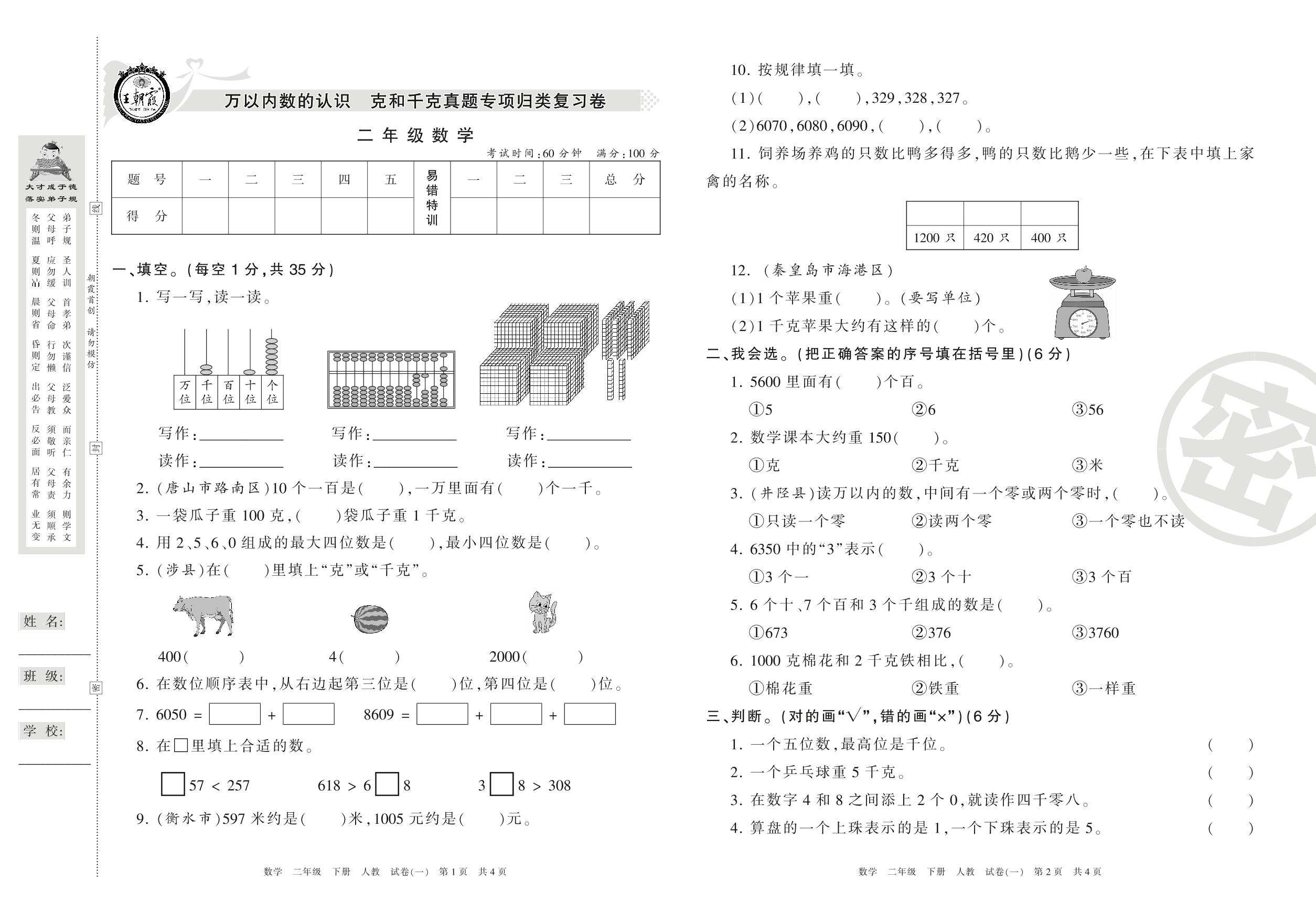 王朝霞期末专项卷二年级下册数学(人教版)_R21080395320【1】