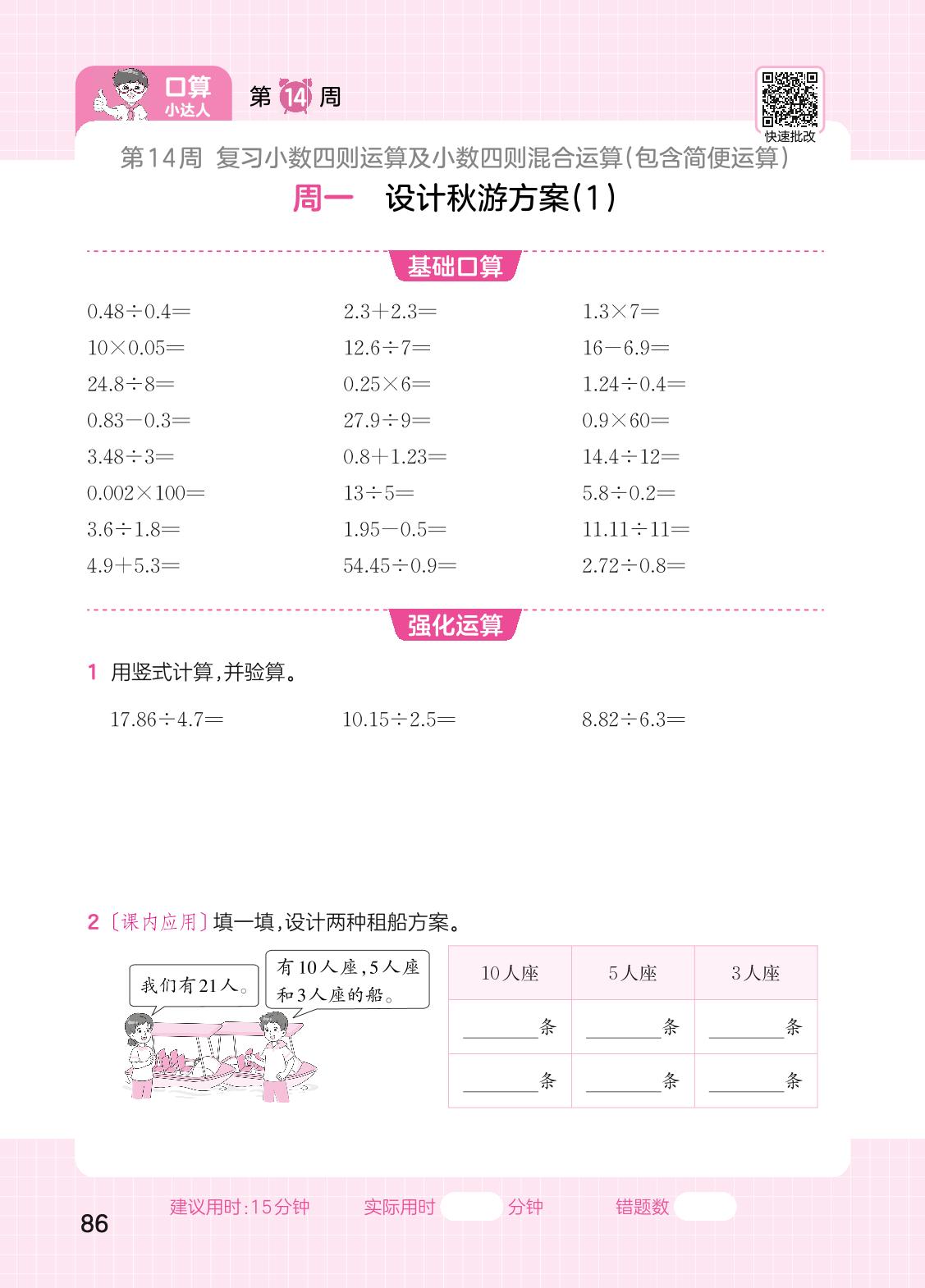 2023上册五年级数学北师版 第14周口算运算