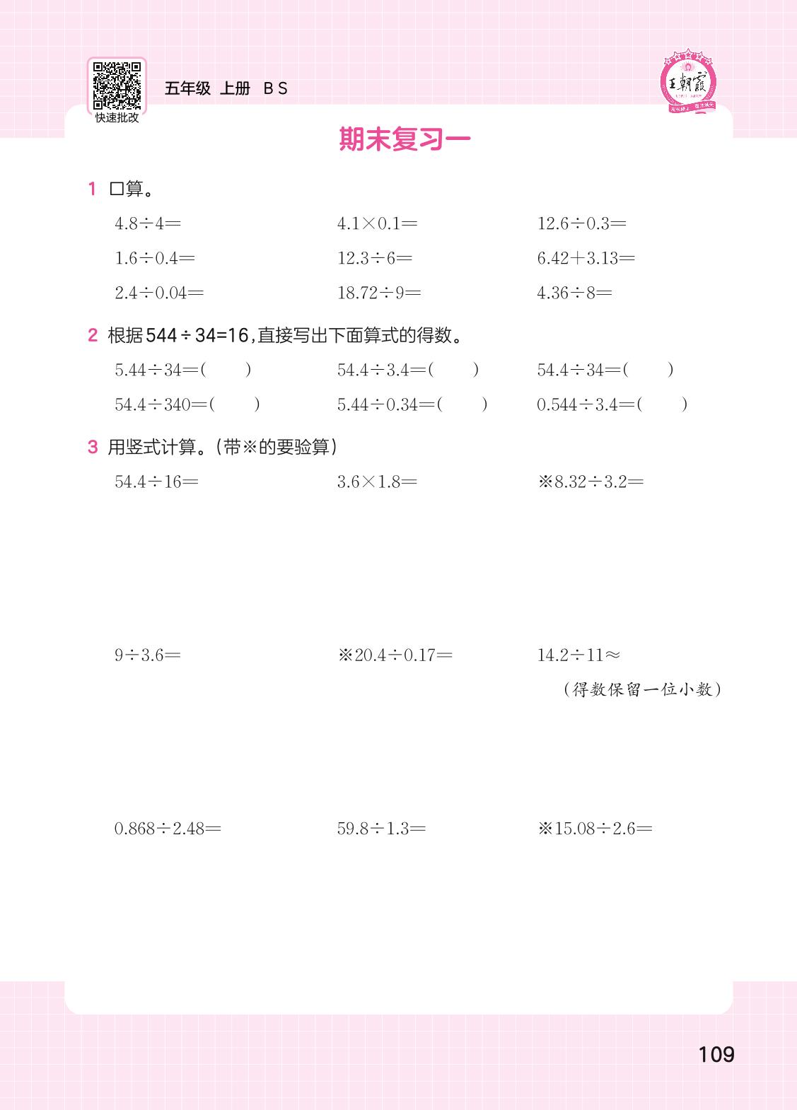 2023上册五年级数学北师版 期末复习一(计算专练)