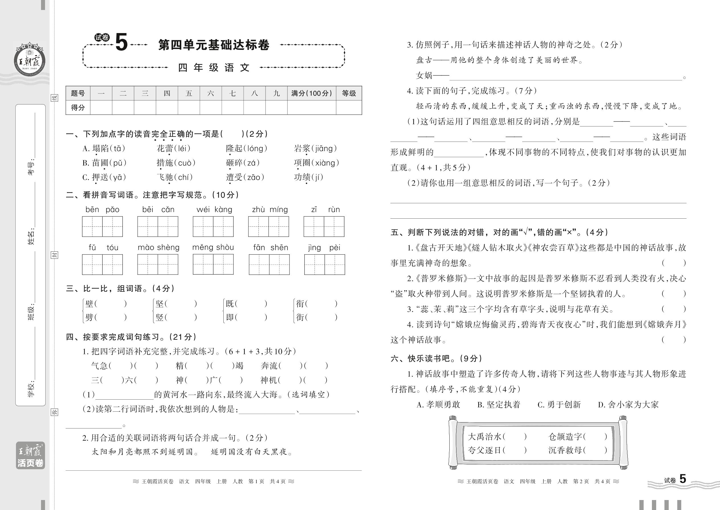四年级语文人教版上册单元卷