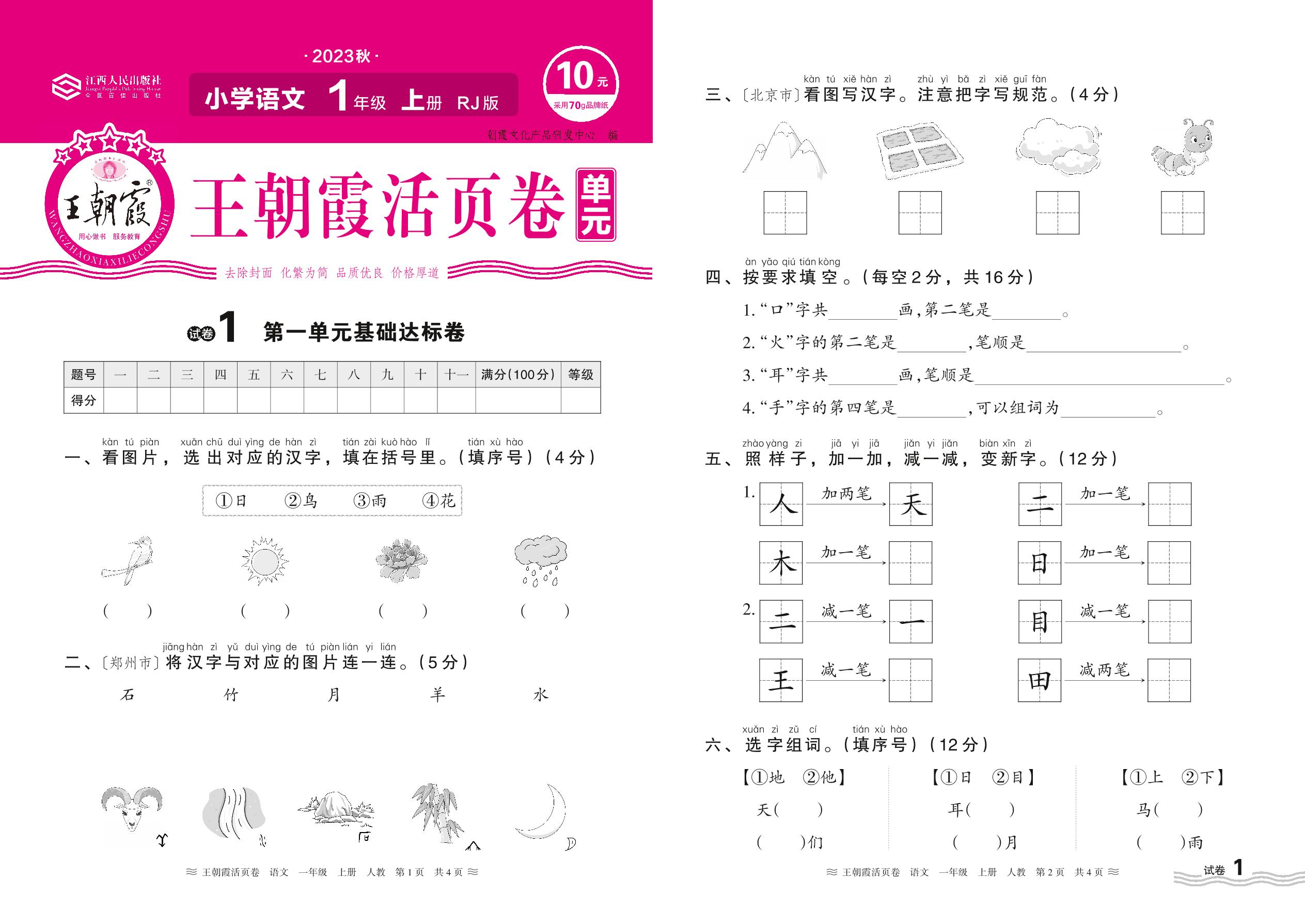 2023上册一年级语文人教版 试卷1 第一单元基础达标卷