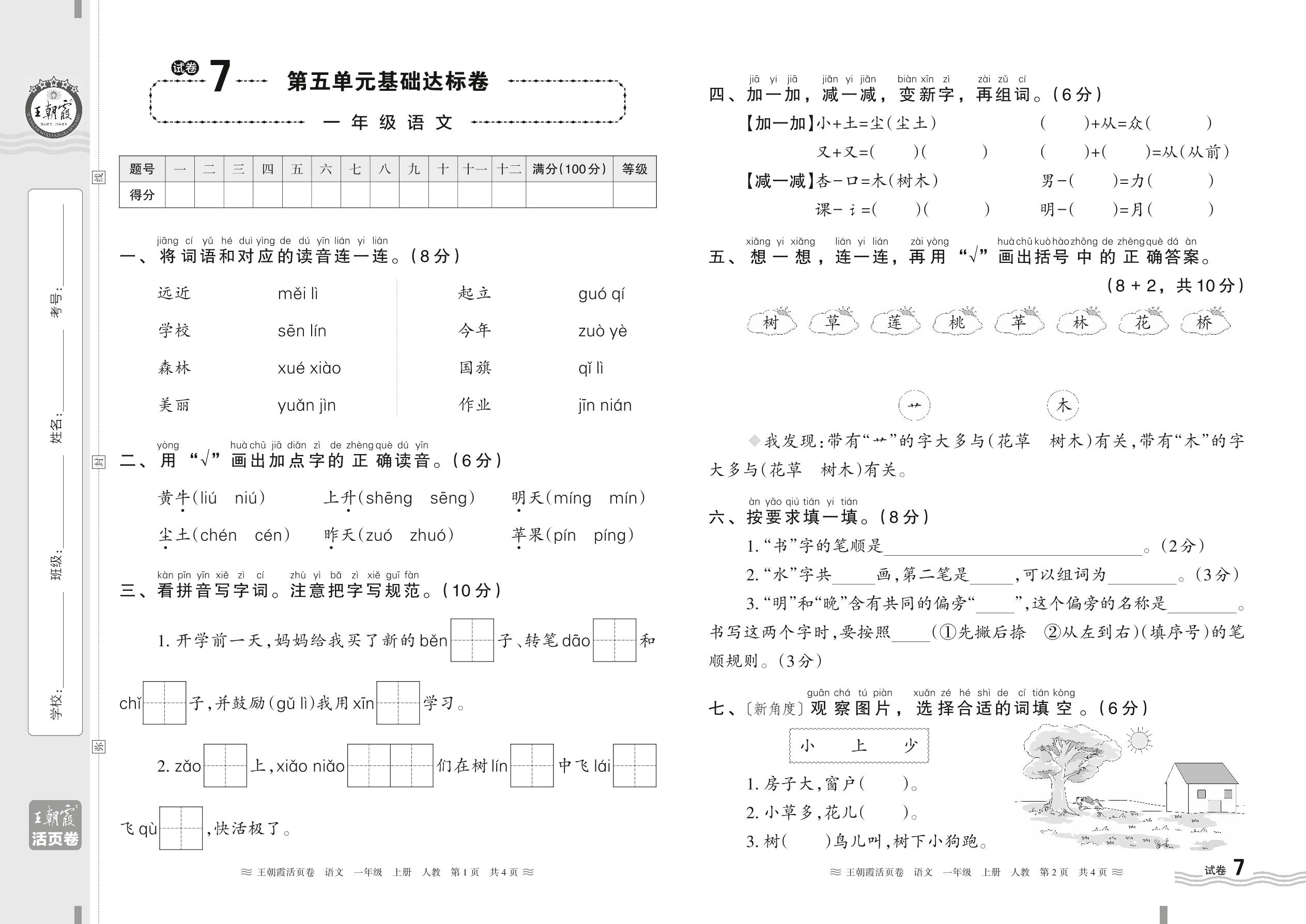 2023上册一年级语文人教版 试卷7 第五单元基础达标卷