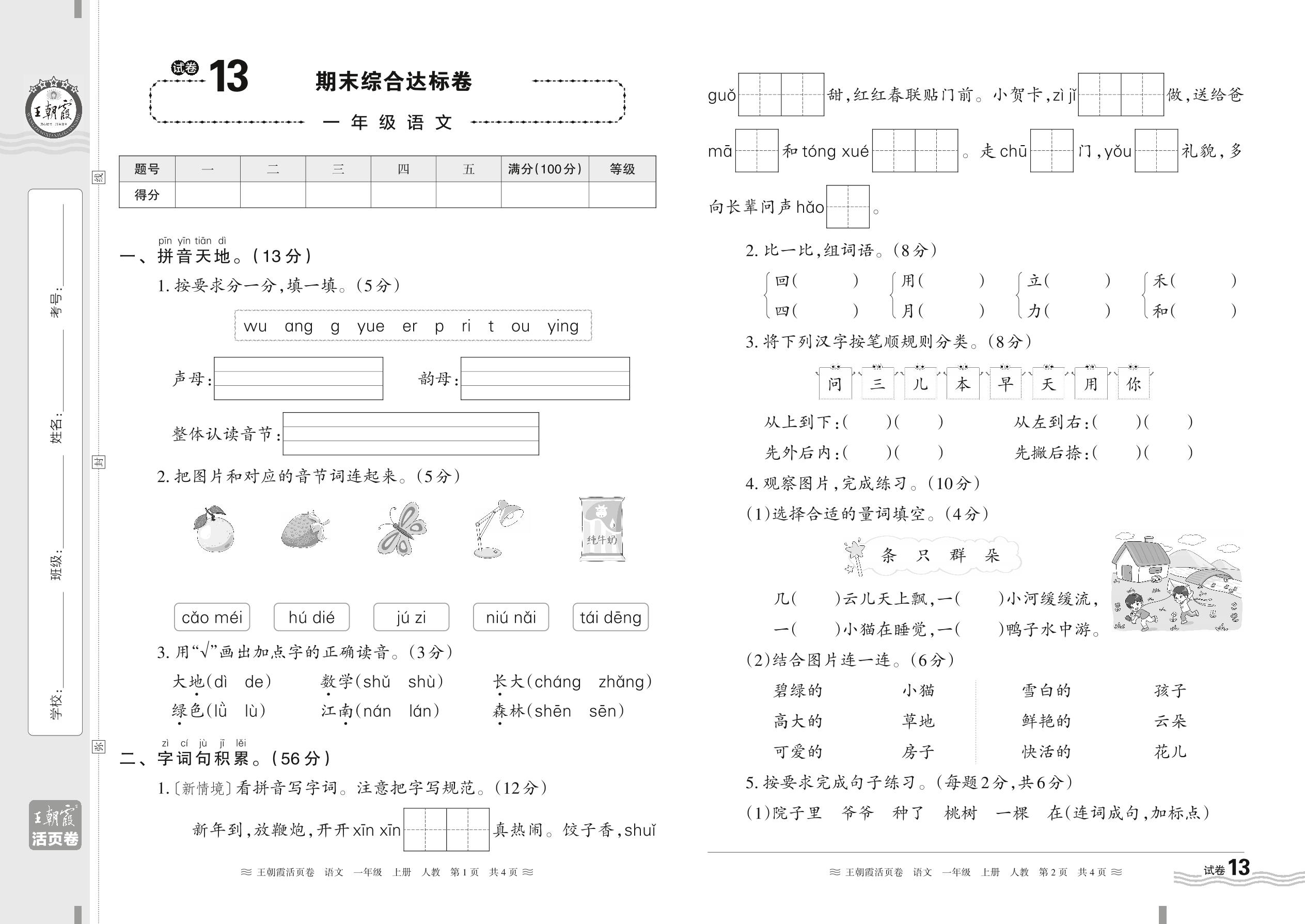 2023上册一年级语文人教版 试卷13 期末综合达标卷
