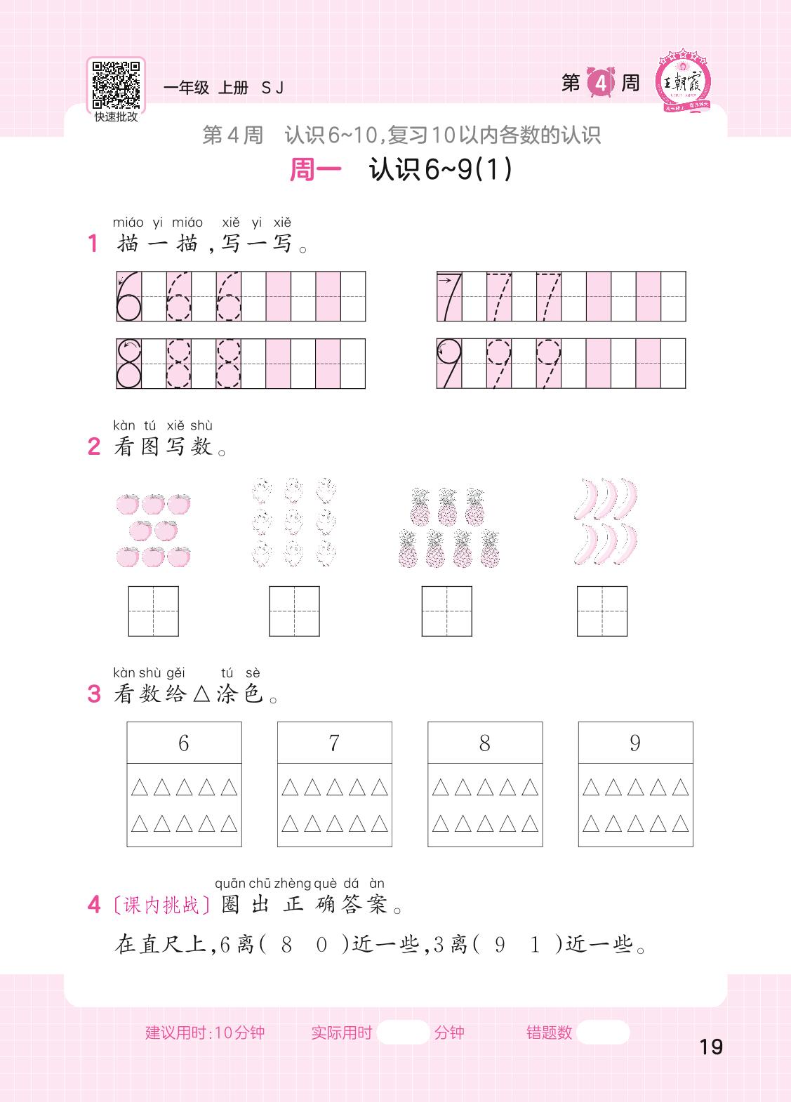 2023上册一年级数学苏教版 第4周