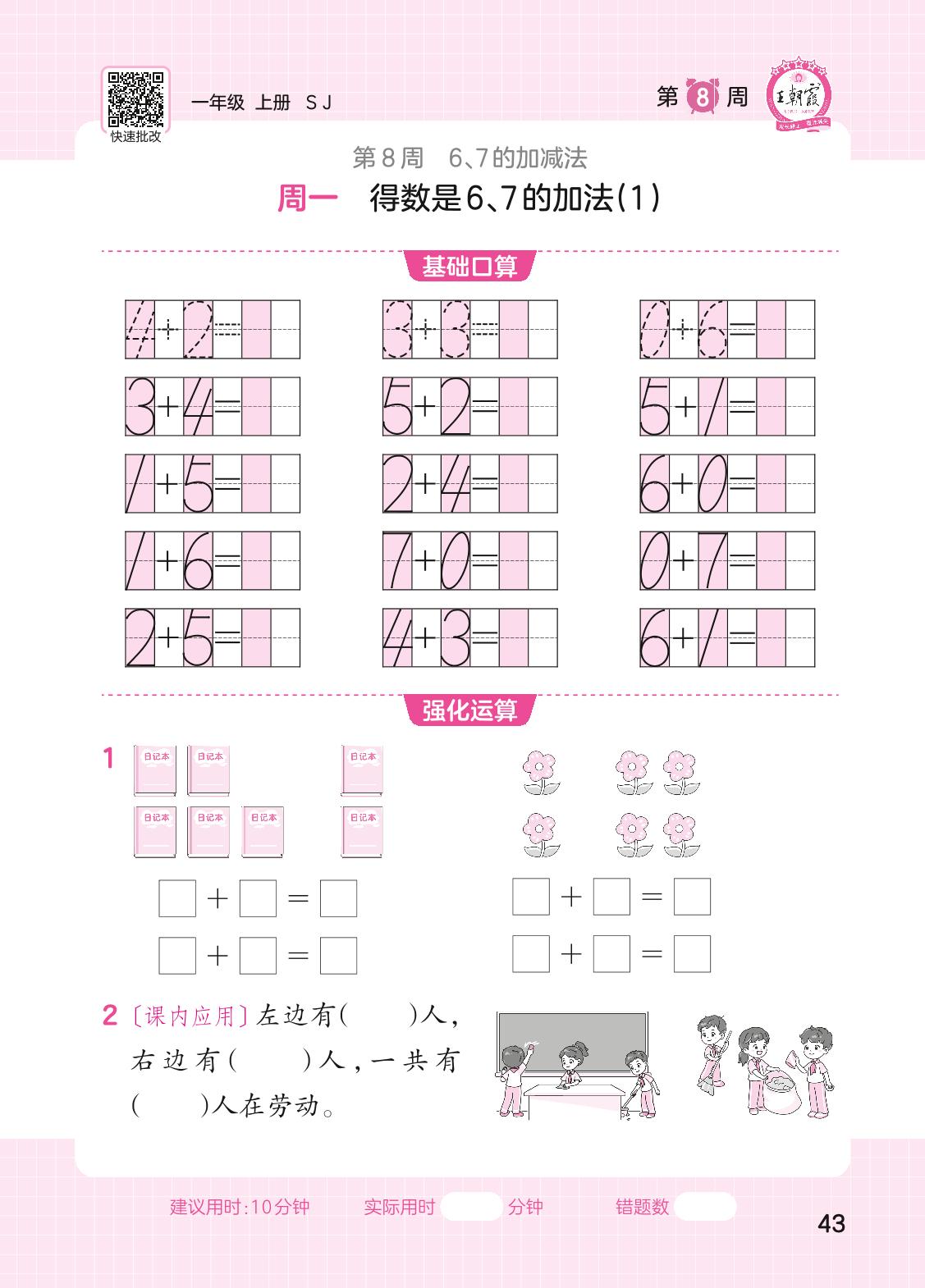 2023上册一年级数学苏教版 第8周口算运算