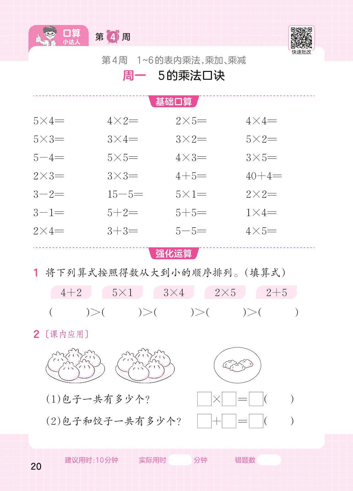 2023上册二年级数学苏教版 第4周口算运算