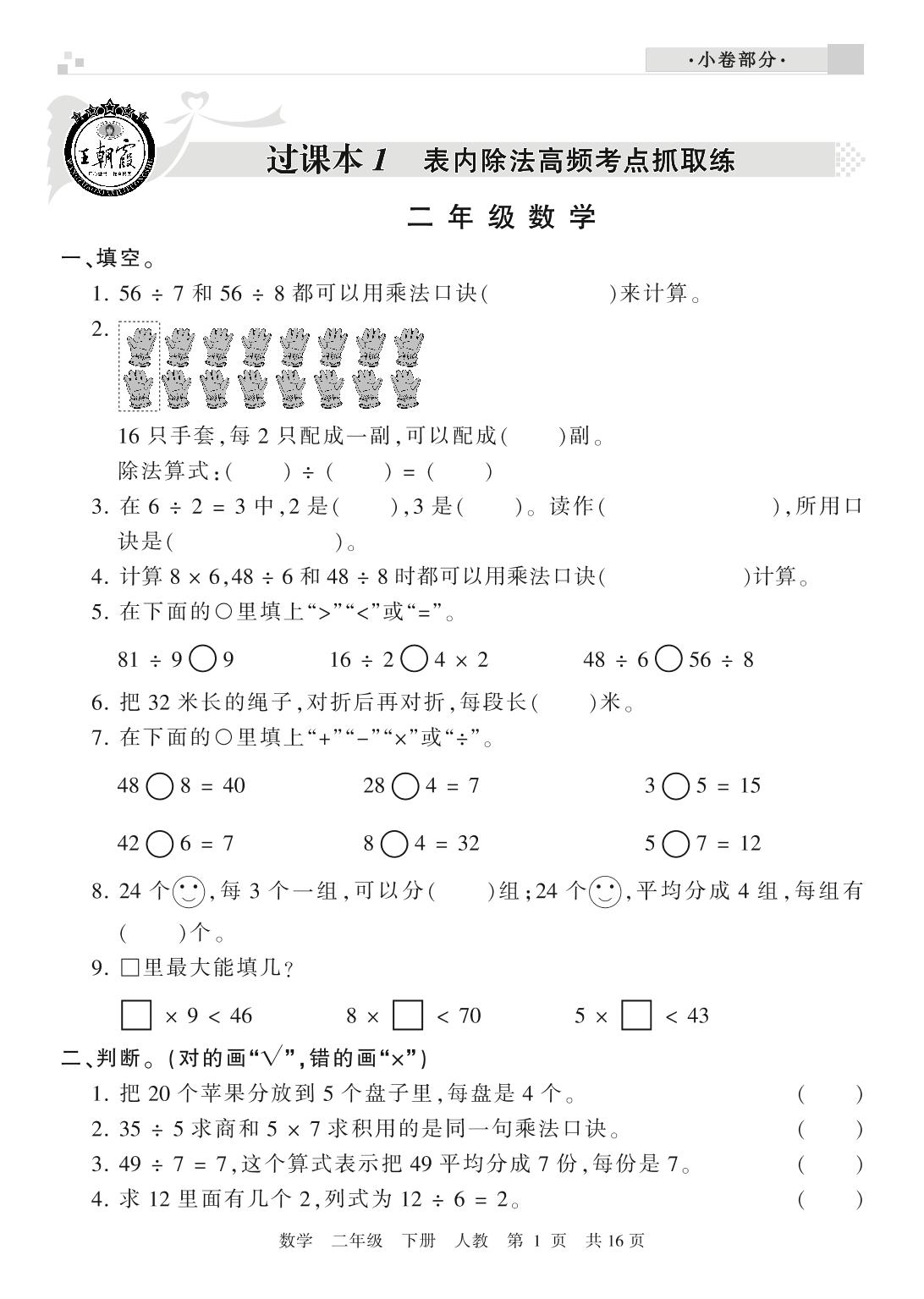 王朝霞期末过课本二年级下册数学(人教版)_R21080395400【0】