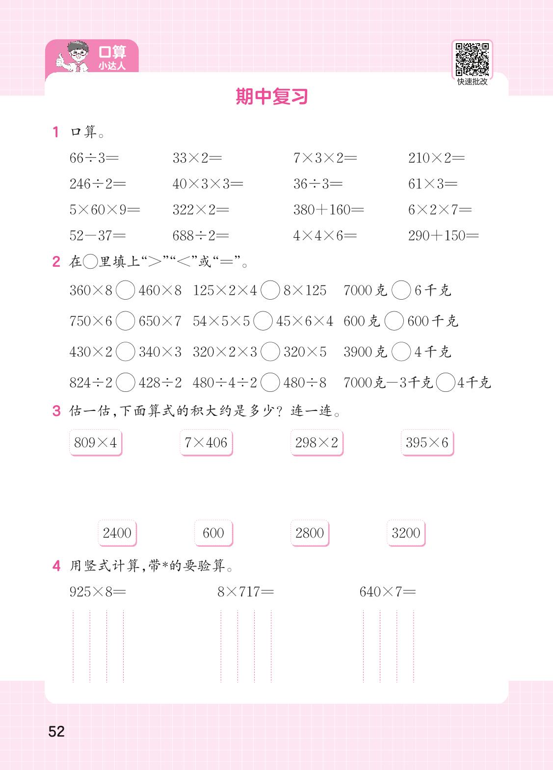 2023上册三年级数学苏教版 期中复习(计算专练)