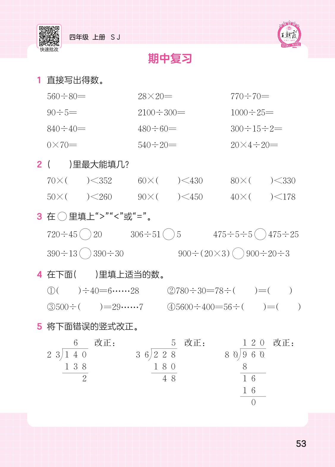 2023上册四年级数学苏教版 期中复习(计算专练)