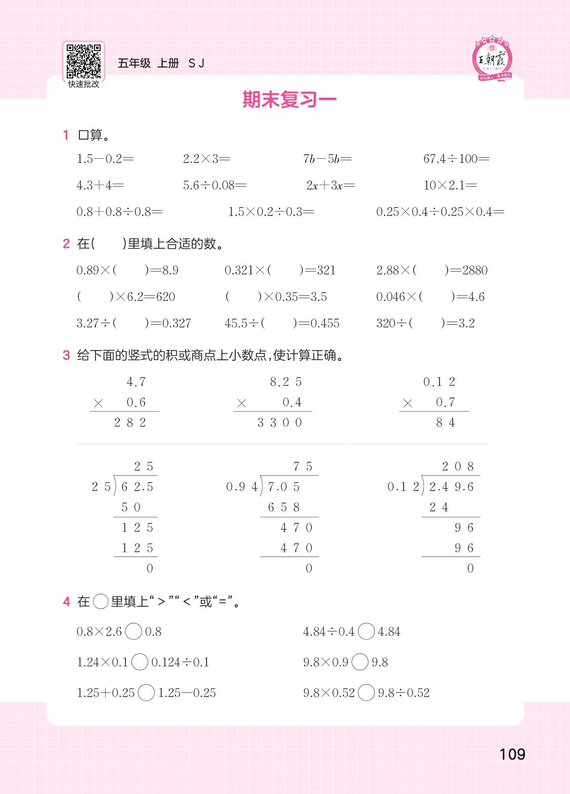 2023上册五年级数学苏教版 期末复习一(计算专练)