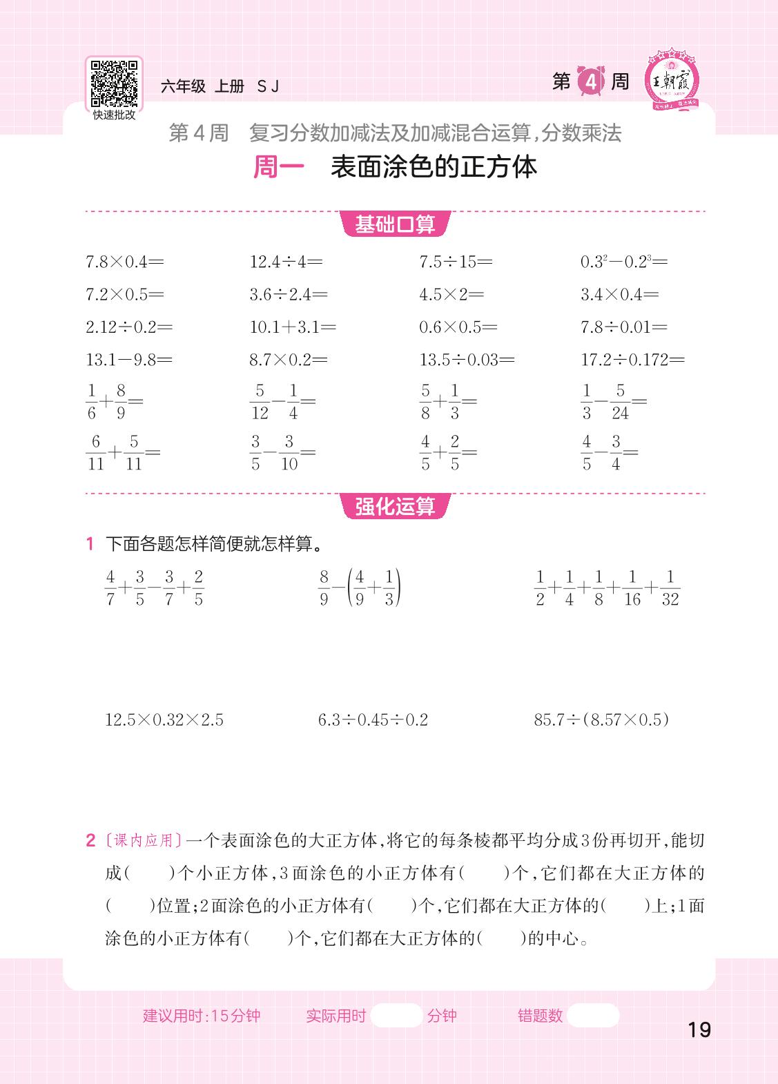 2023上册六年级数学苏教版 第4周口算运算