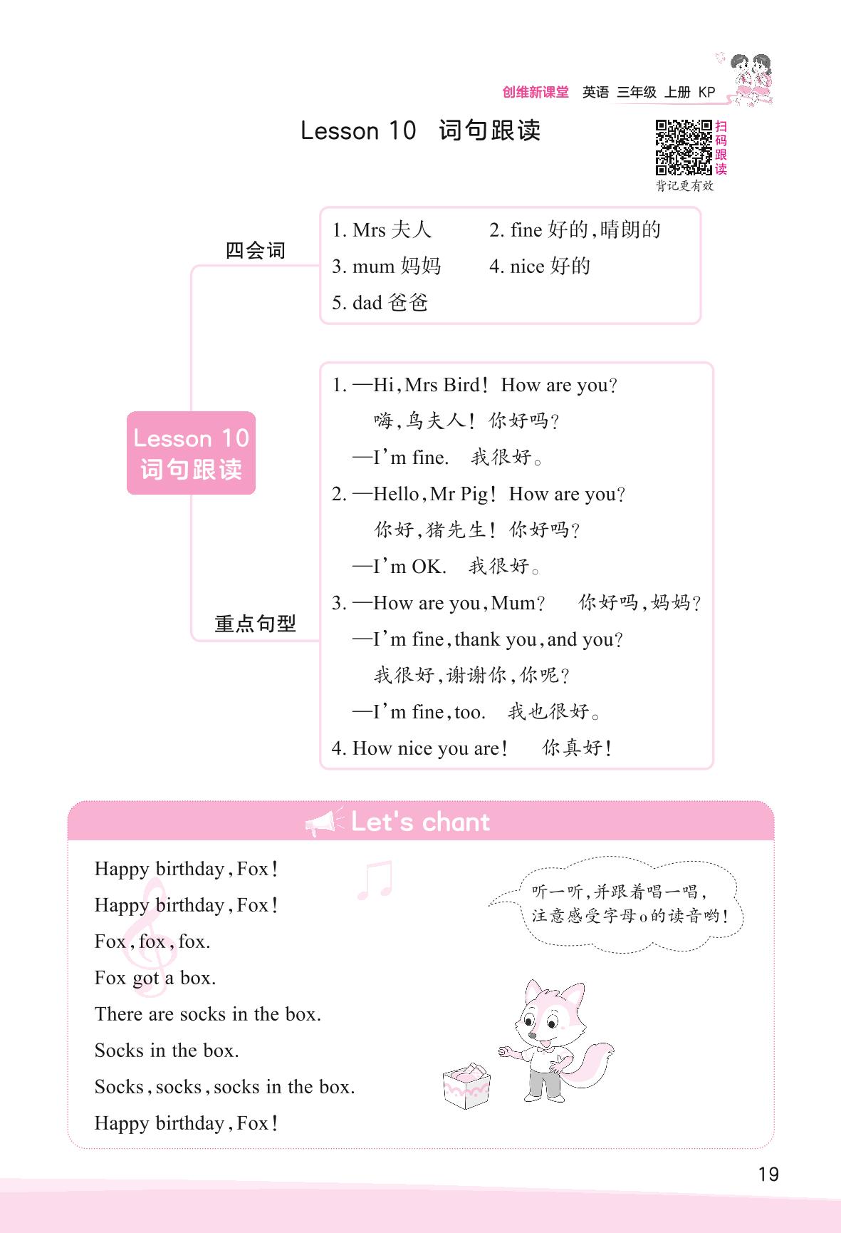 2023上册三年级英语科普版 Lesson 10 词句跟读