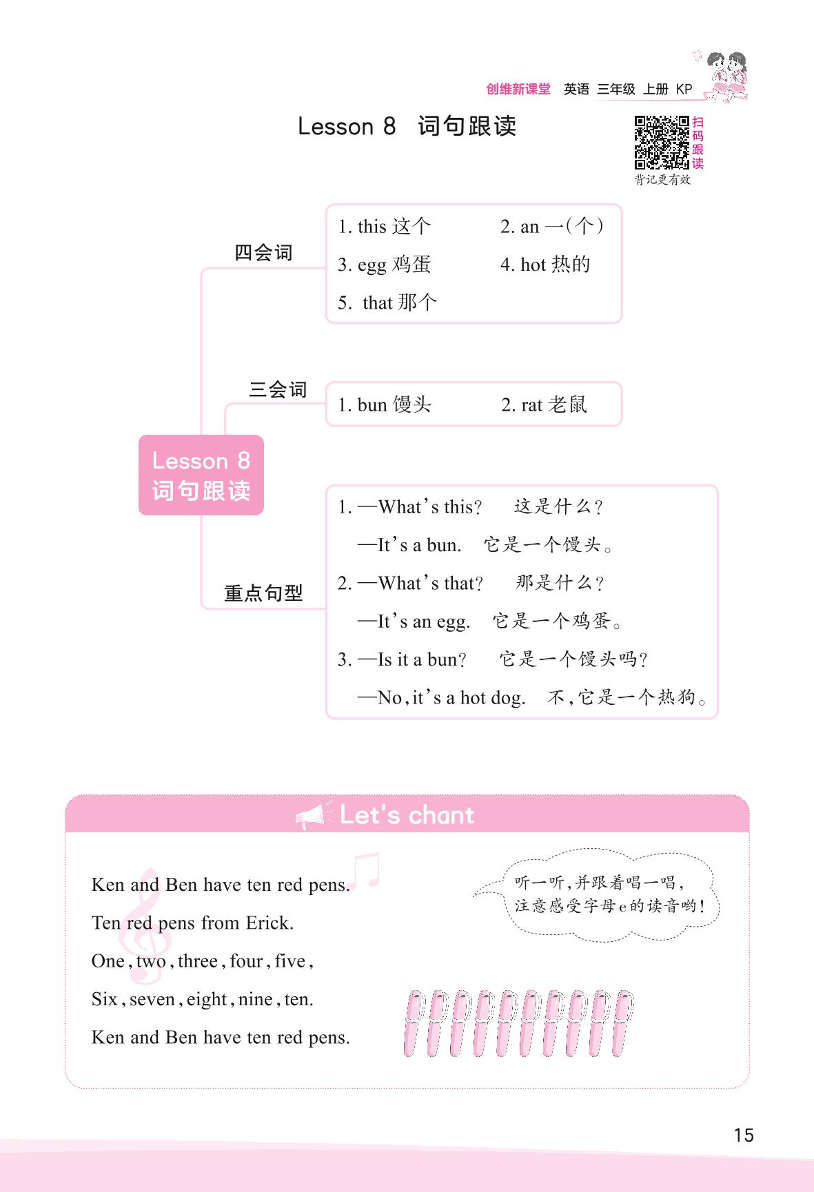 2023上册三年级英语科普版 Lesson 8 词句跟读