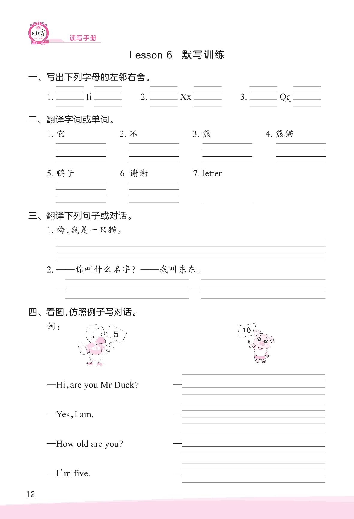 2023上册三年级英语科普版 Lesson 6 默写训练