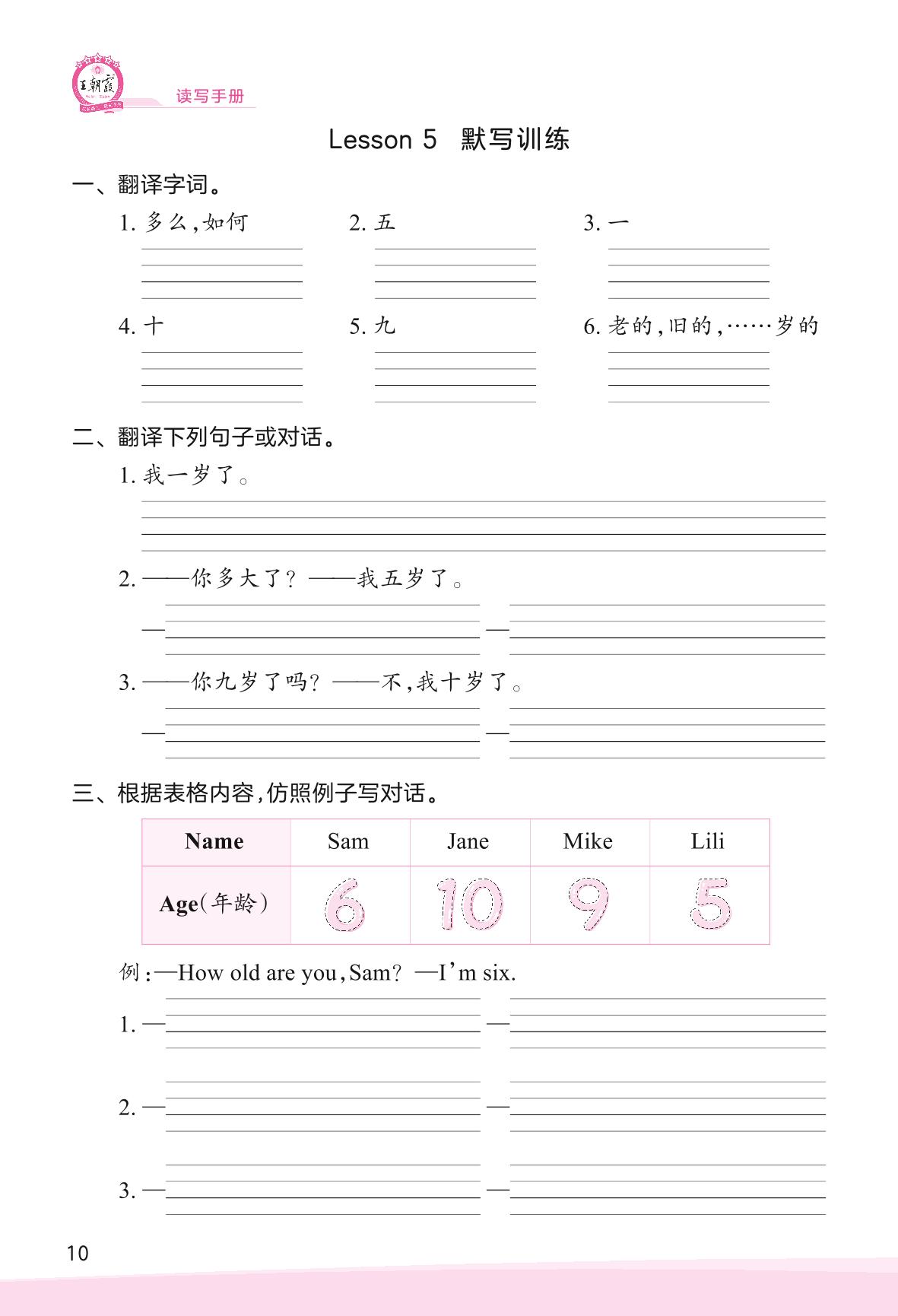 2023上册三年级英语科普版 Lesson 5 默写训练