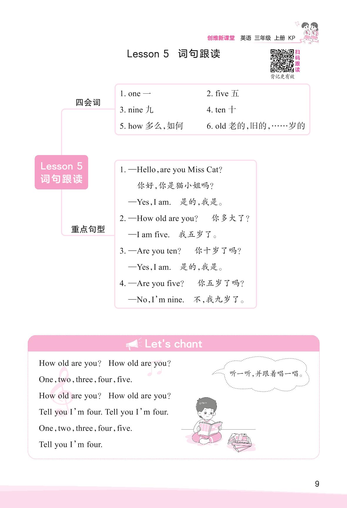 2023上册三年级英语科普版 Lesson 5 词句跟读