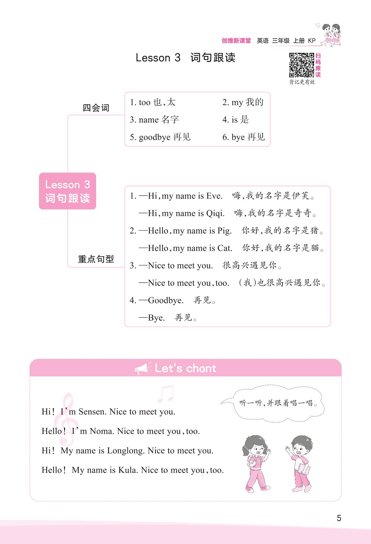 2023上册三年级英语科普版 Lesson 3 词句跟读
