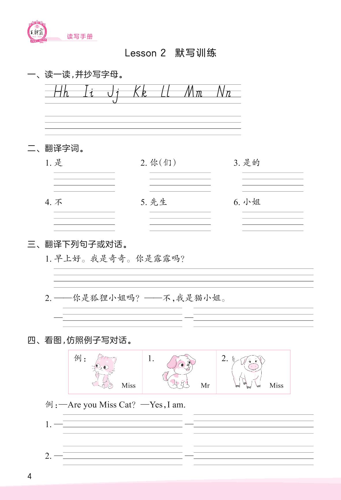 2023上册三年级英语科普版 Lesson 2 默写训练