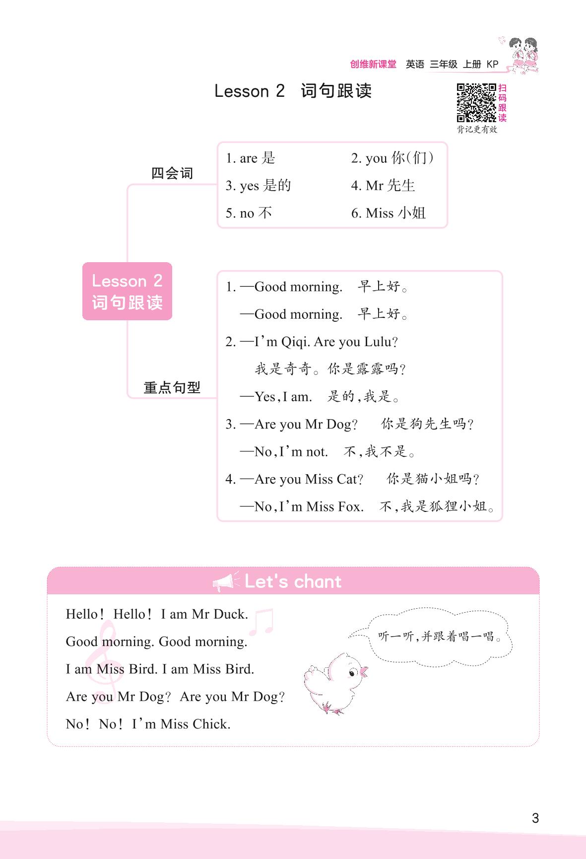 2023上册三年级英语科普版 Lesson 2 词句跟读