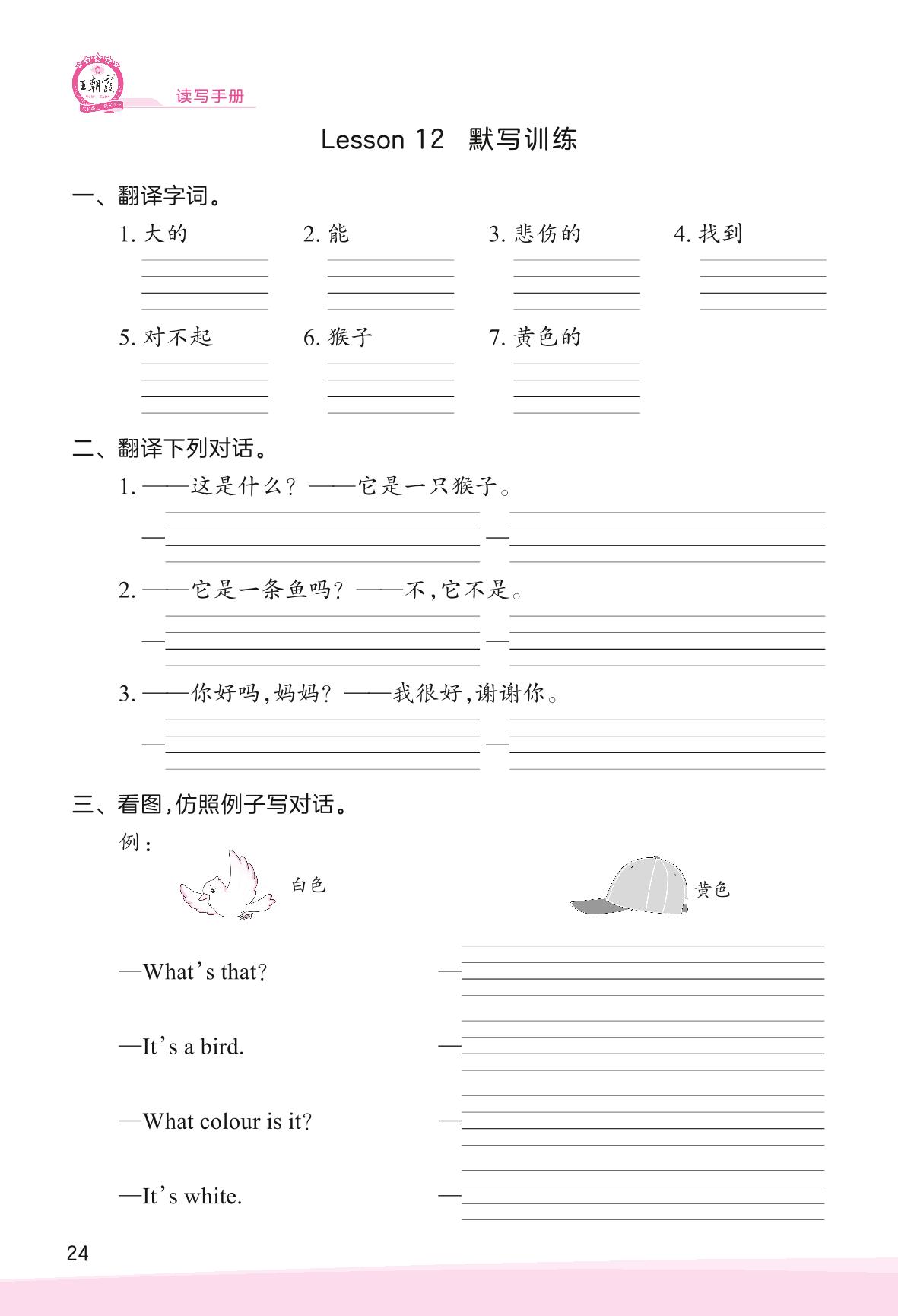 2023上册三年级英语科普版 Lesson 12 默写训练