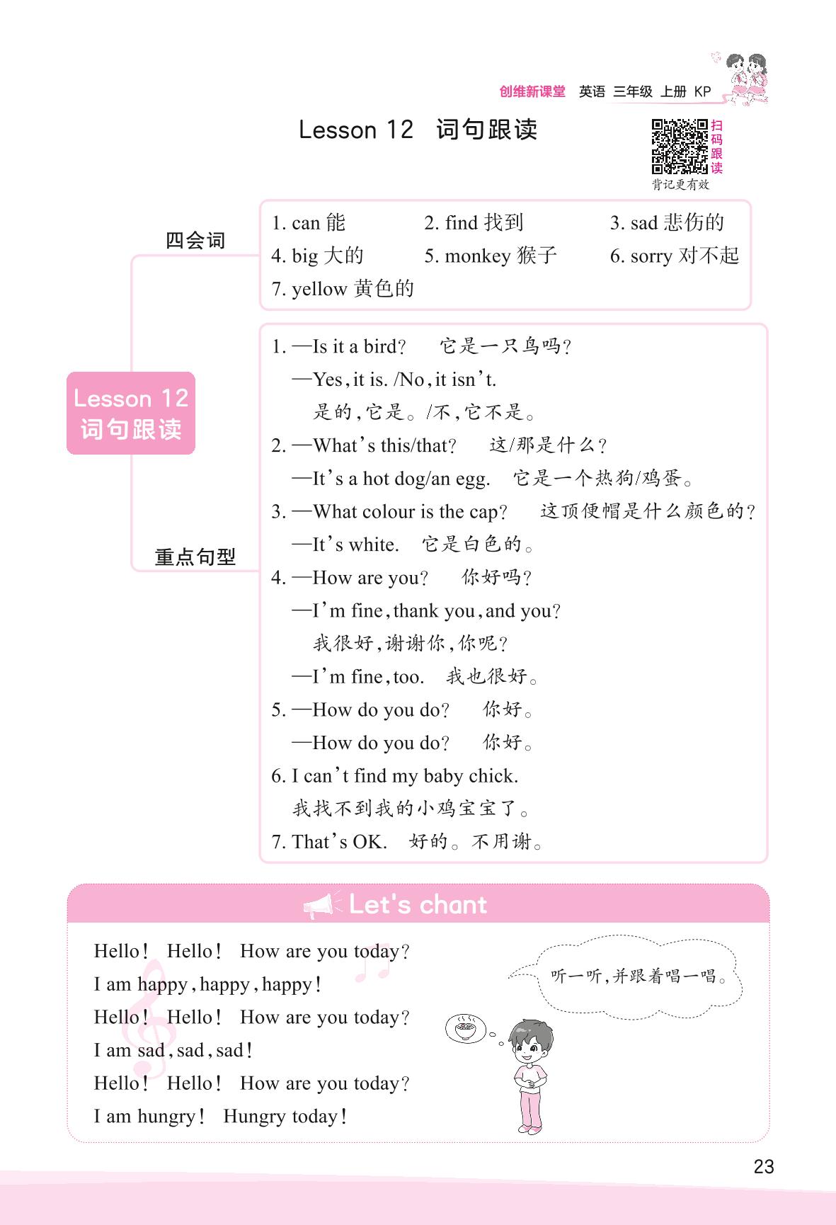 2023上册三年级英语科普版 Lesson 12 词句跟读