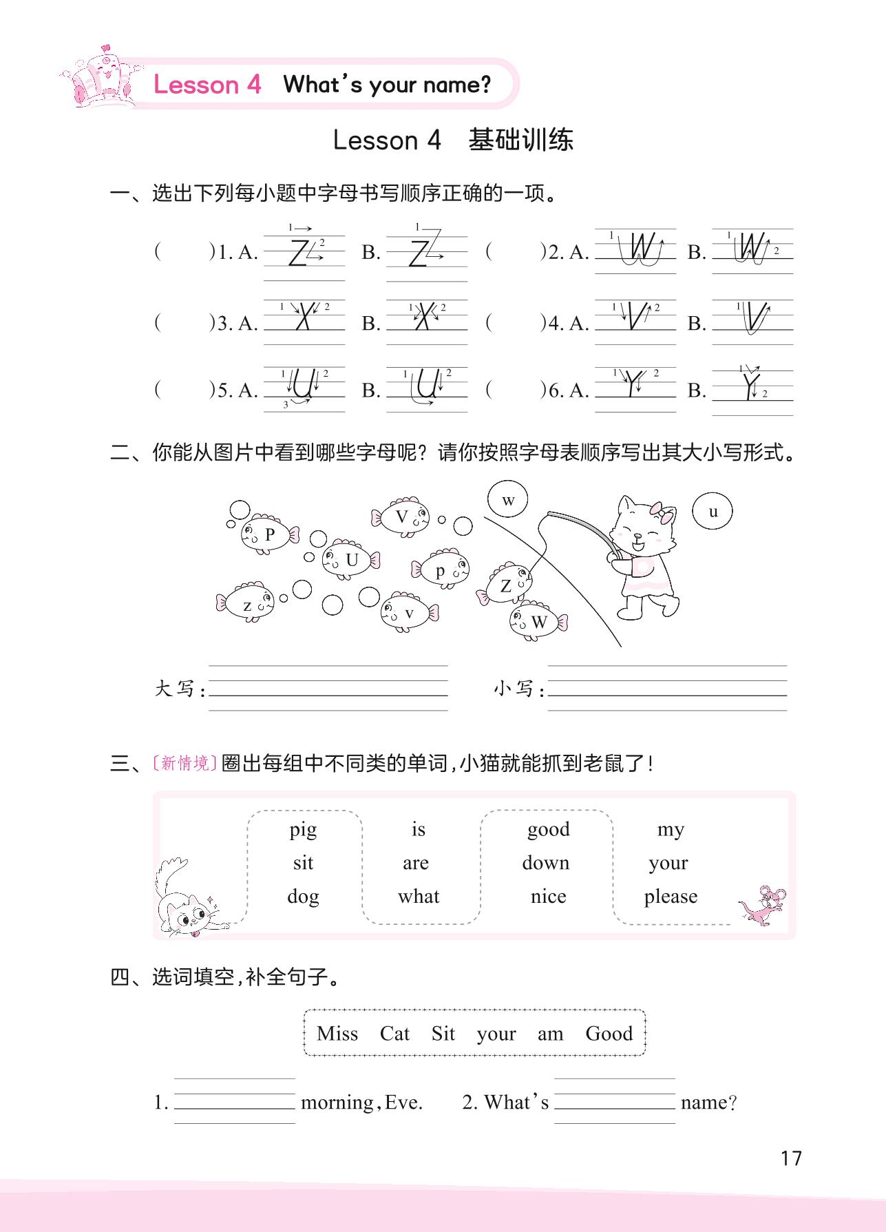 2023上册三年级英语科普版 Lesson 4 基础训练